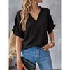 Summer Simple Solid Short sleeve Frill V-neck Shirts Top Women Women's Shirt Top