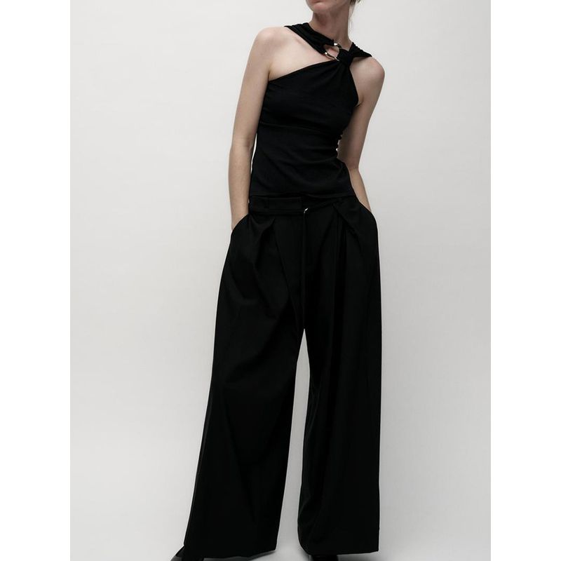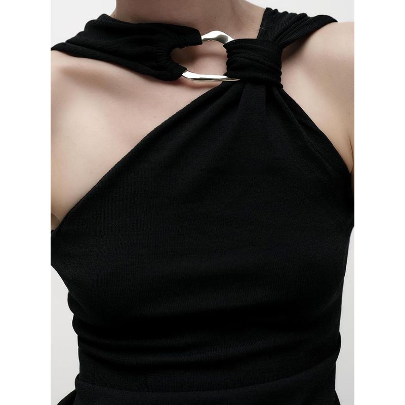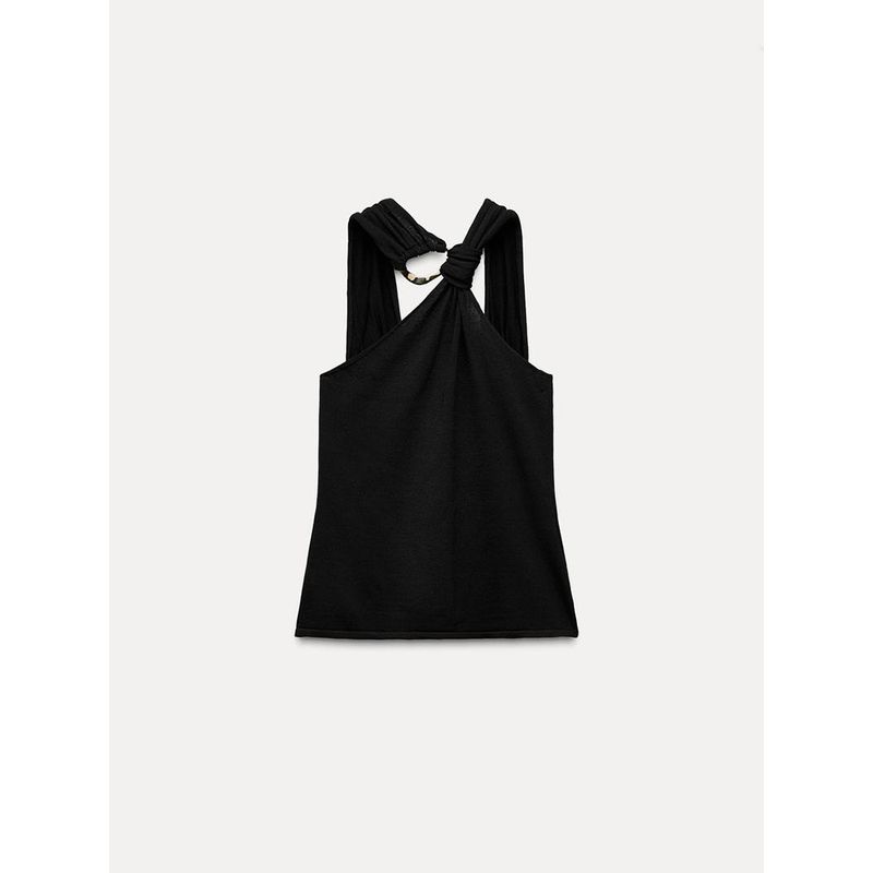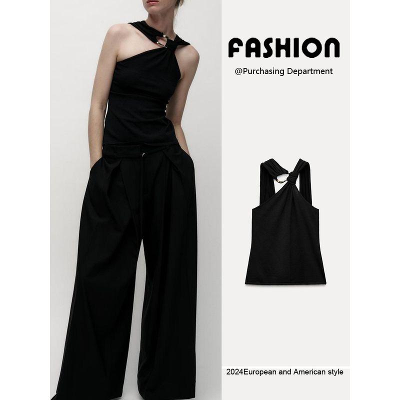 Za2025 Spring New Women's Clothing Special-Interest Design Halter Gold Inlay Sleeveless Cold-Shoulder Slim Fit Slimming Top