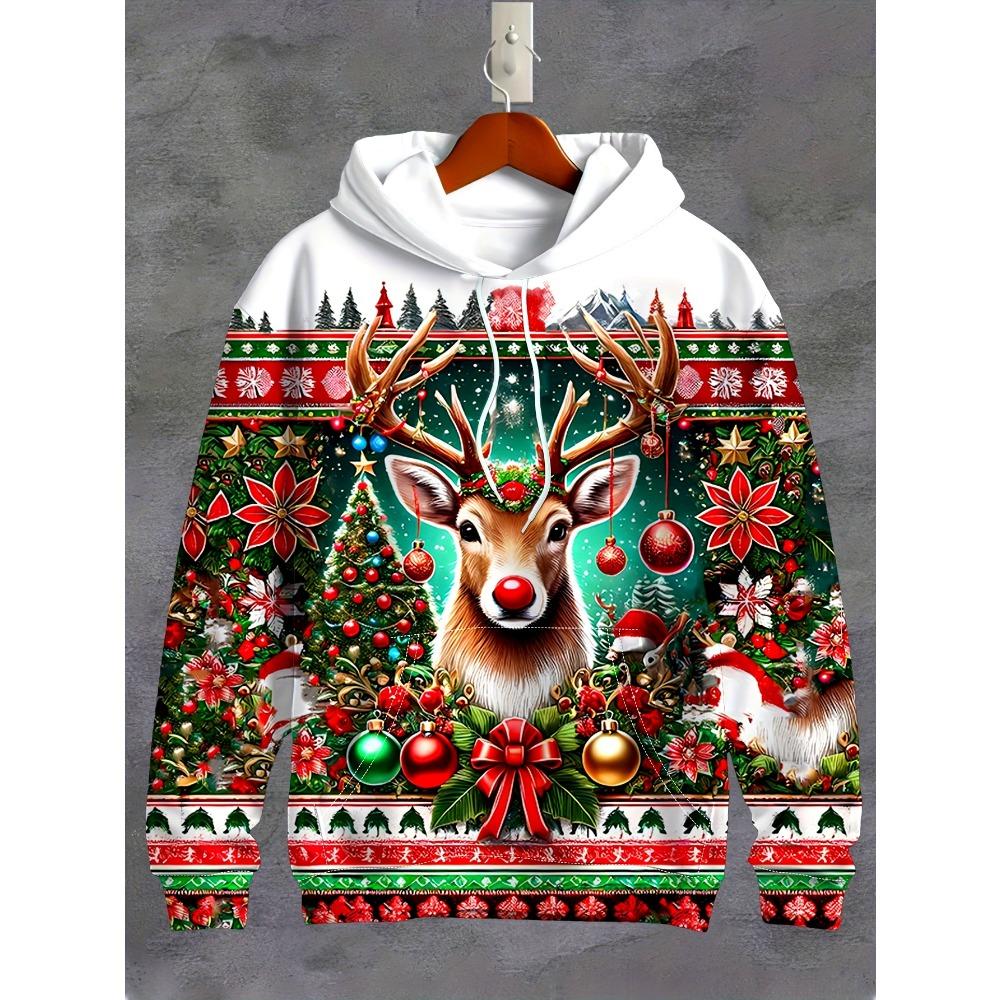 Худи с полной печатью Рождество Санта Клаус Лось Новинка Мужская Женская Повседневные Пуловеры Толстовки Одежда Рождественский Подарок Пуловеры со Снеговиком