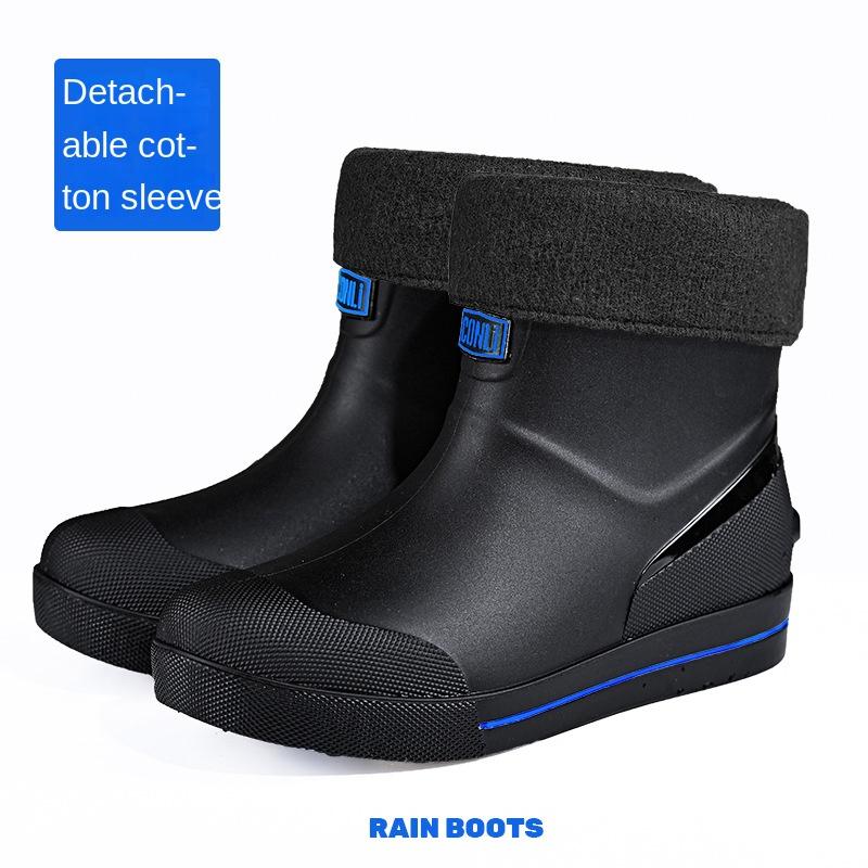 Снежные Теплые Толстые Резиновые Сапоги, Кухонная Водонепроницаемая и Противоскользящая Обувь для Дождя, Мужская Модная и Износостойкая Водная Обувь