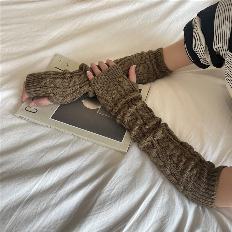 Женские вязаные армвары с косами - Однотонные, без пальцев, эластичные и ветрозащитные для осени/зимы
