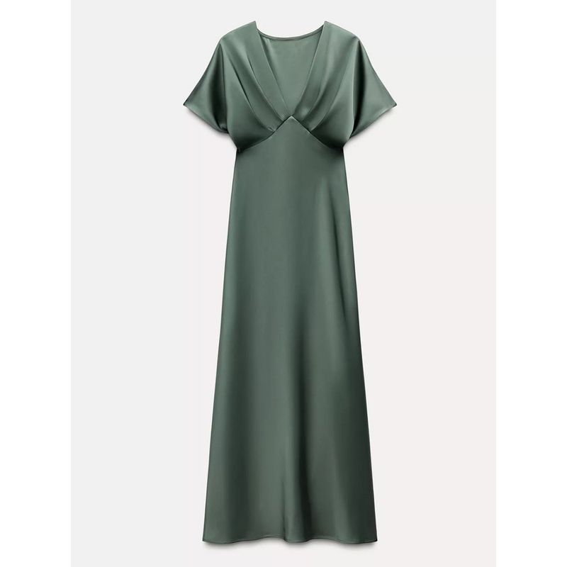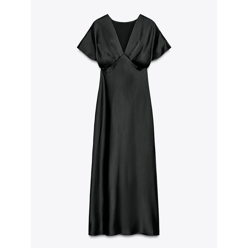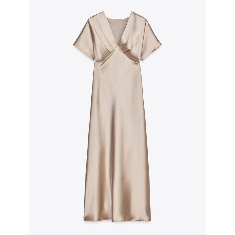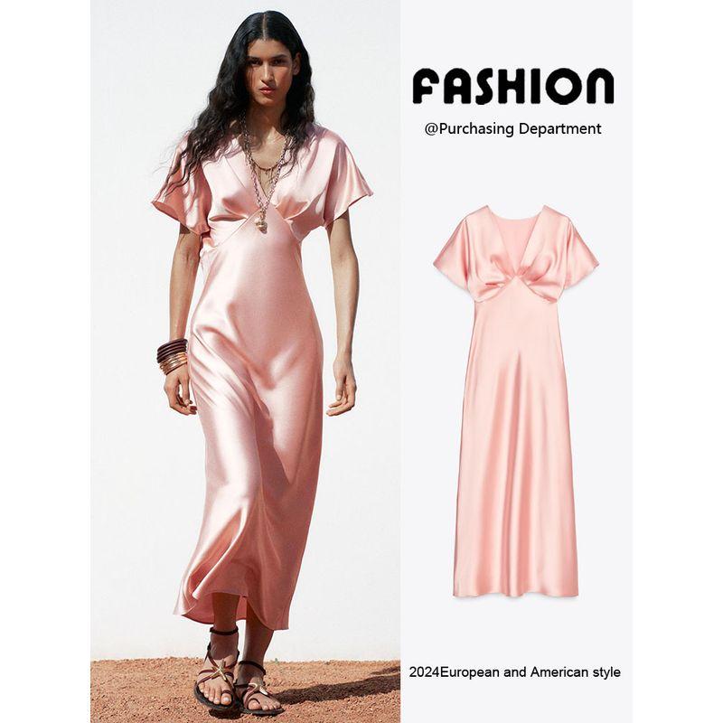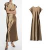 Za2025 Summer New Product Women's Clothes Plaid Silk Satin Texture Casual Short Sleeve Midi Skirt Dress 2330399 620