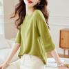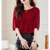 Женская футболка со средним рукавом и круглым вырезом, новая элегантная модель на весну и лето, свободный тонкий вязаный свитер, модный пуловер для женщин