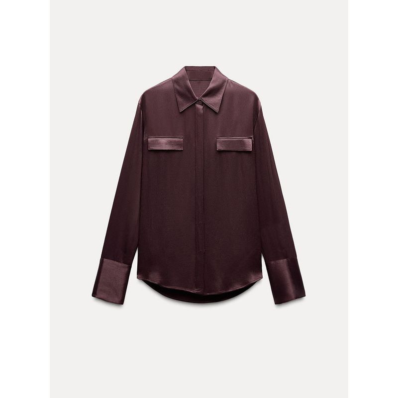 Za2025 Spring New Women's Clothing Casual Flip Pocket Silk Satin Texture Lapel Long Sleeve Shirt 8987213