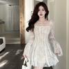 Sexy Lace Sleeve Slim Looking Dress Backless Lace up