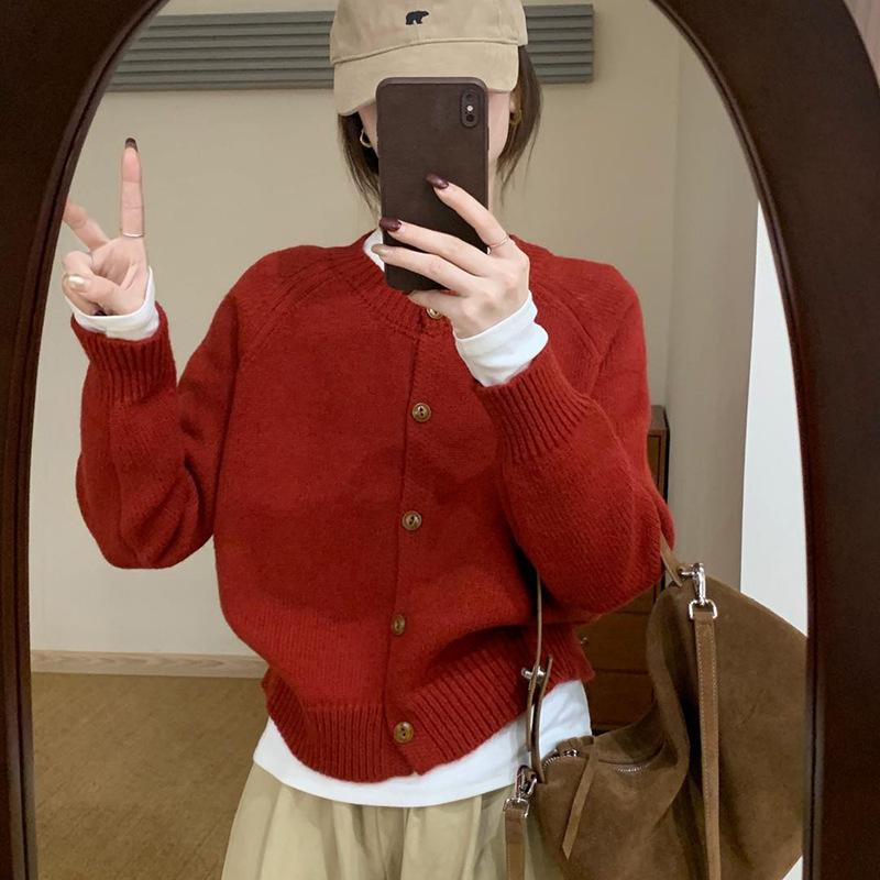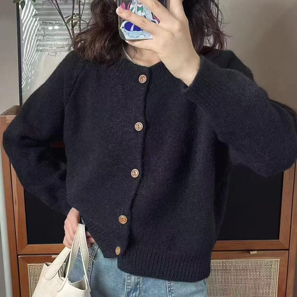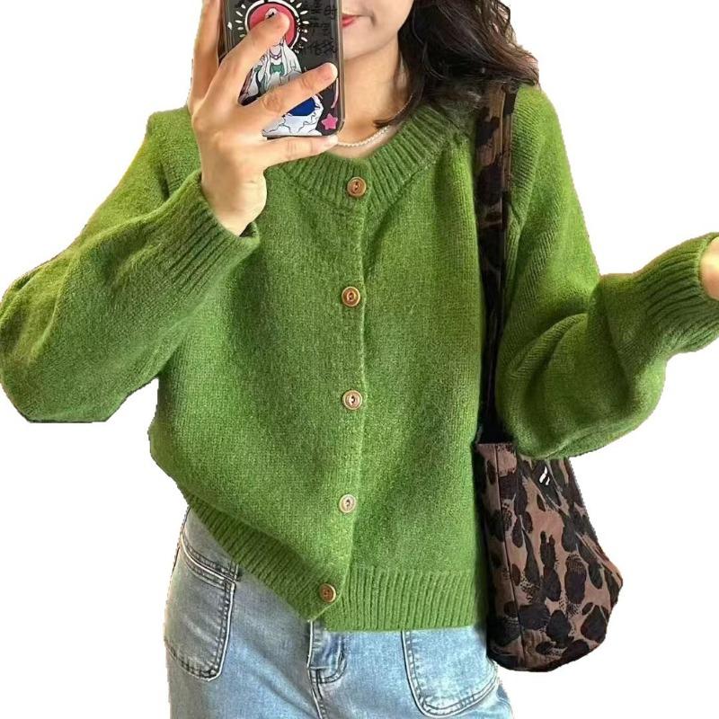 Осенний новый кардиган с круглым вырезом, вязаный топ, женский свободный повседневный тонкий мягкий восковой свитер-жакет