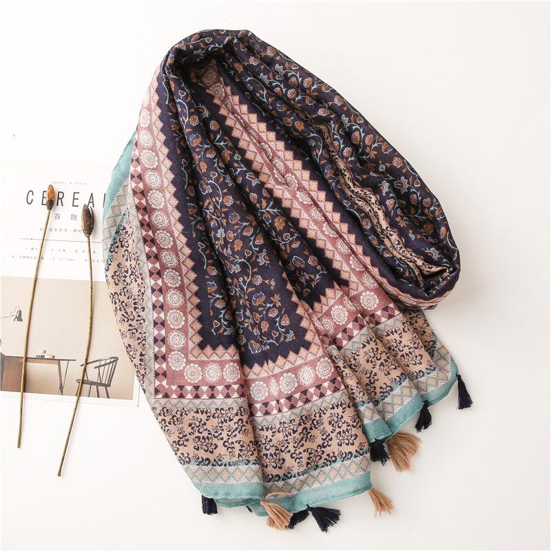Дизайнерский брендовый женский шарф с классическим принтом, женские шали из хлопка, мягкие, большие хиджабы, повязка на голову с кисточками, платок