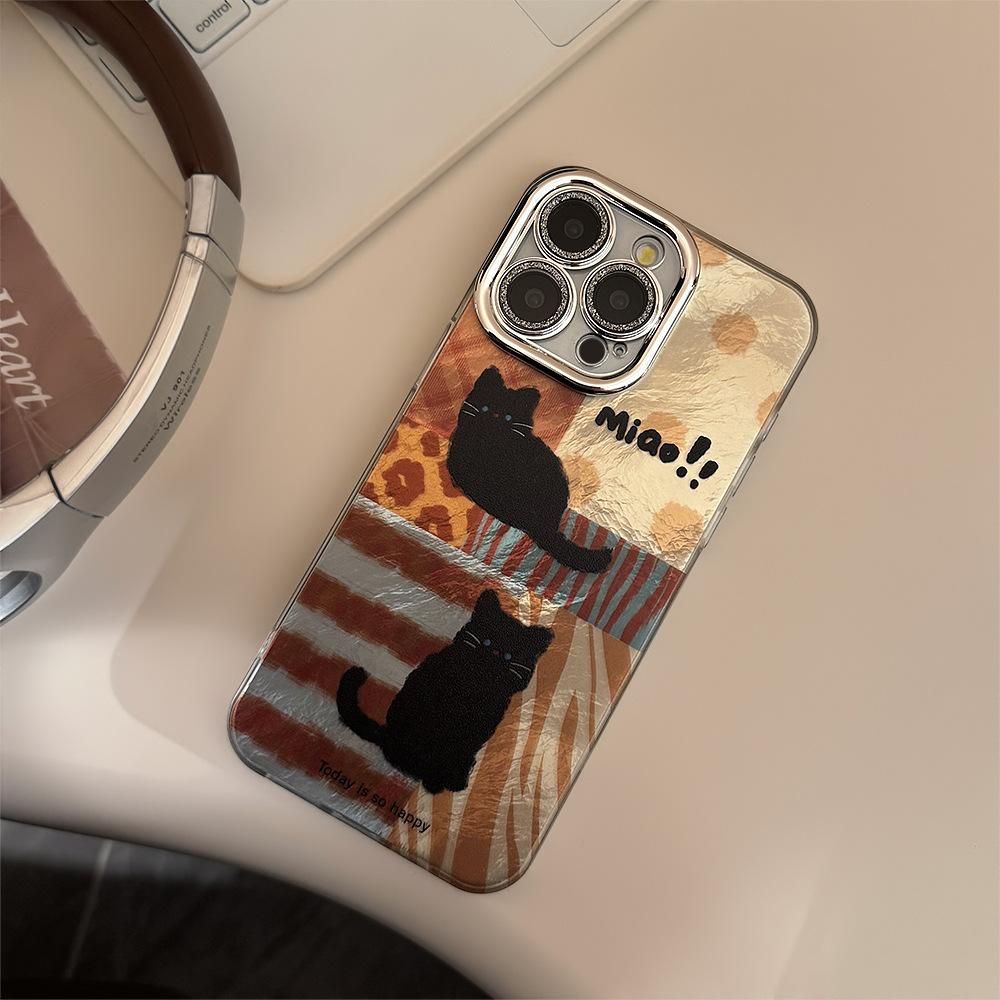 Чехол для мобильного телефона с леопардовым принтом, подходит для 17 Apple 16pro Max, пленка для объектива, iPhone13, противоударный, 12, ретро, 15