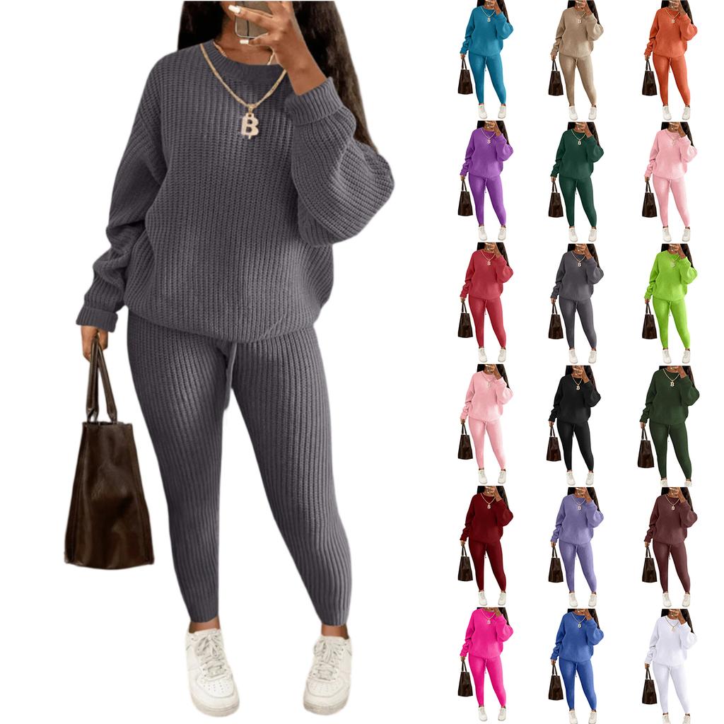 Модный женский повседневный вязаный костюм-двойка — купить товар онлайн с бесплатной доставкой по всему миру!