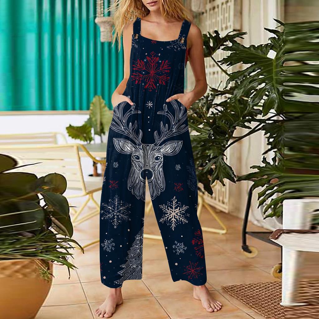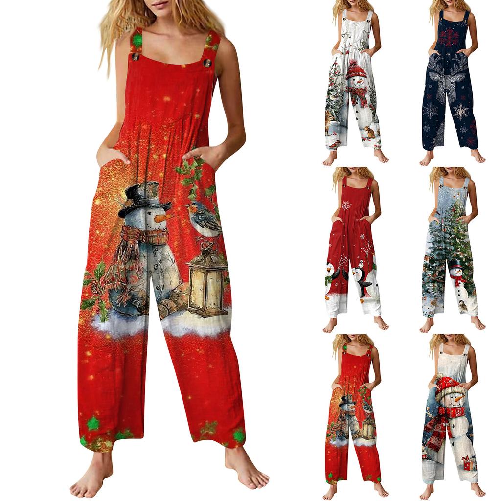 Женский повседневный комбинезон без рукавов с рождественским принтом из хлопка