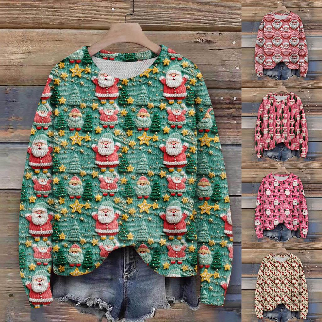 Женский рождественский свитер Милый забавный рождественский свитер Осень и зима Свитер с длинным рукавом вязаный