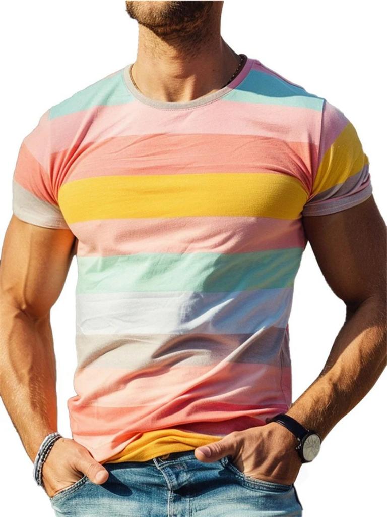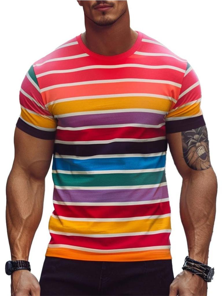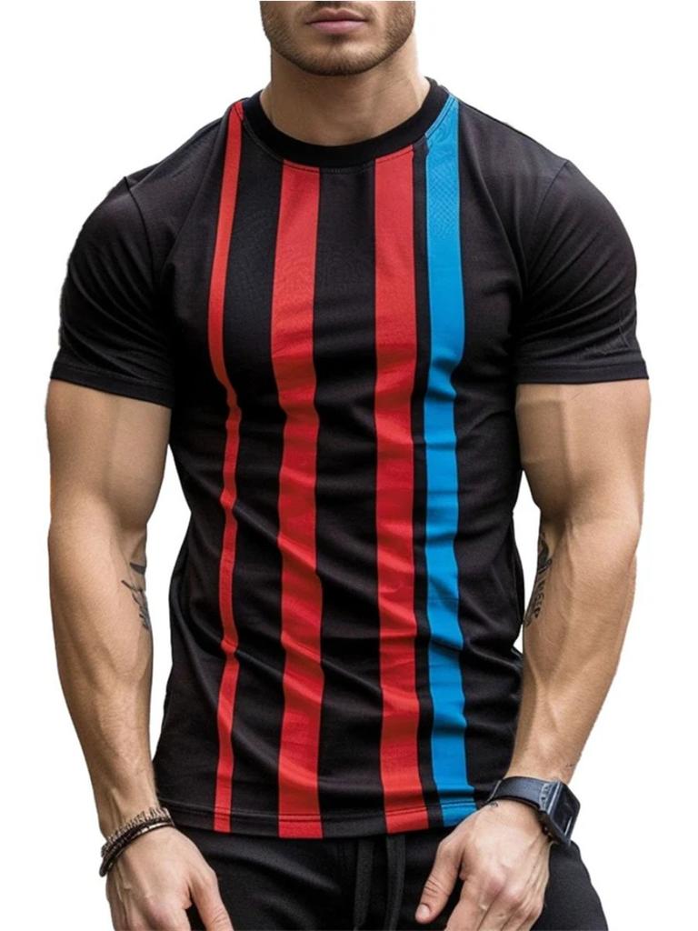 Летняя мода Полосатые 3D-принтованные футболки для мужчин Летняя повседневная футболка с круглым вырезом и коротким рукавом Свободные быстросохнущие дышащие футболки Топы