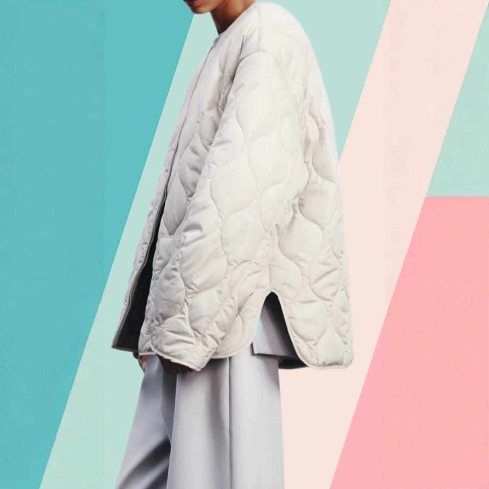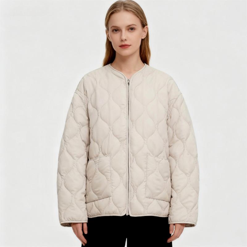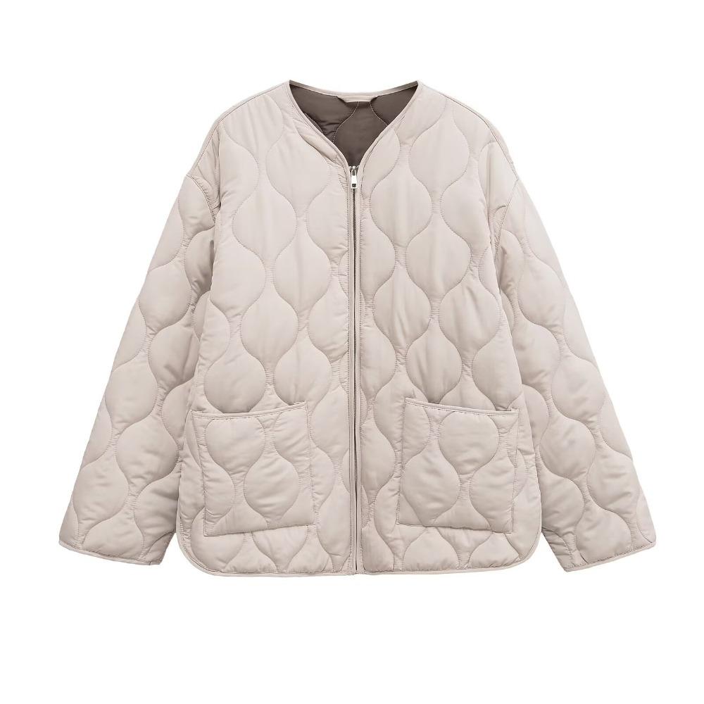 Женская осенне-зимняя стеганая хлопковая куртка: Удобный круглый вырез, длинные рукава, карманы на молнии, теплая верхняя одежда