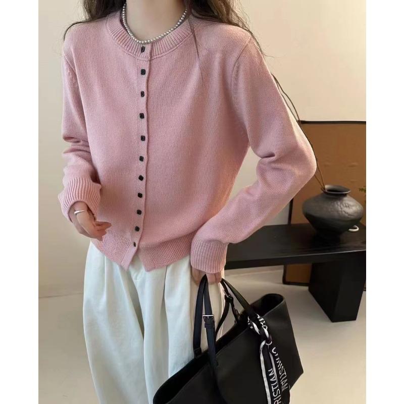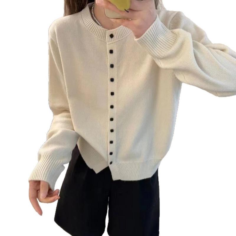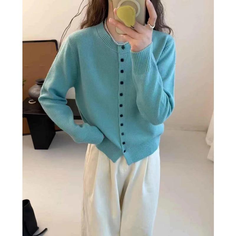 Простой темпераментный кардиган крупной вязки с круглым вырезом и застежкой на одну пуговицу, женский мягкий, восковой, приятный к коже кардиган с длинными рукавами, универсальный