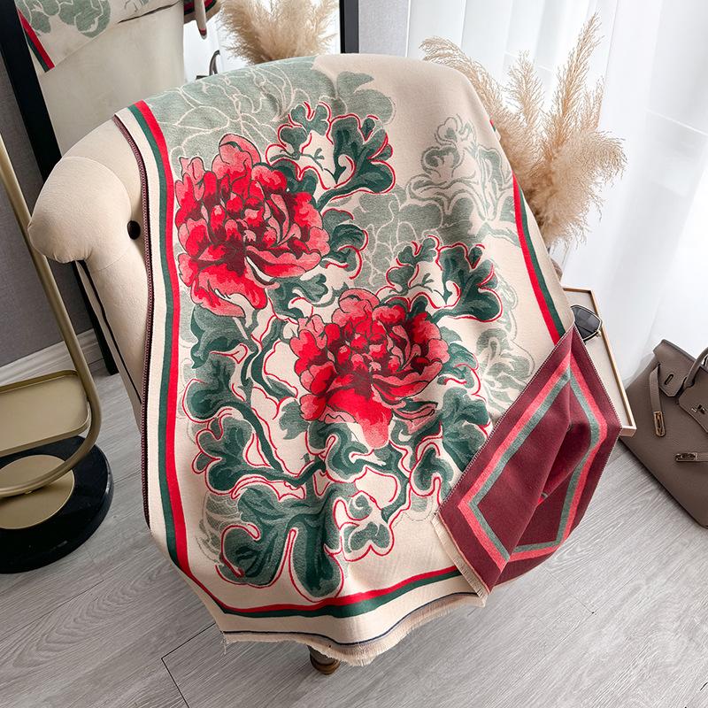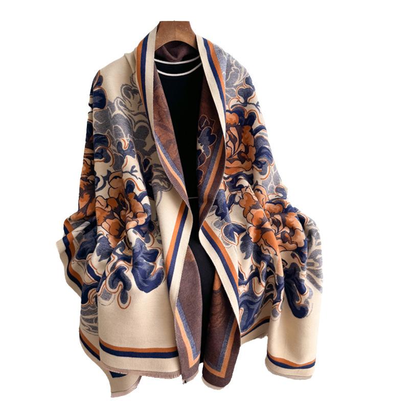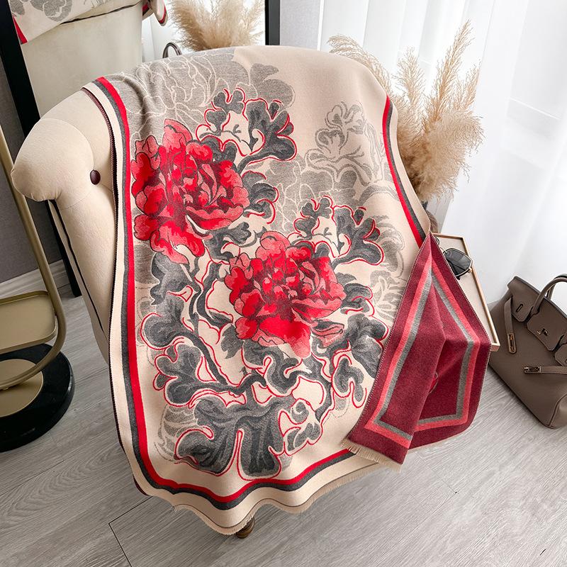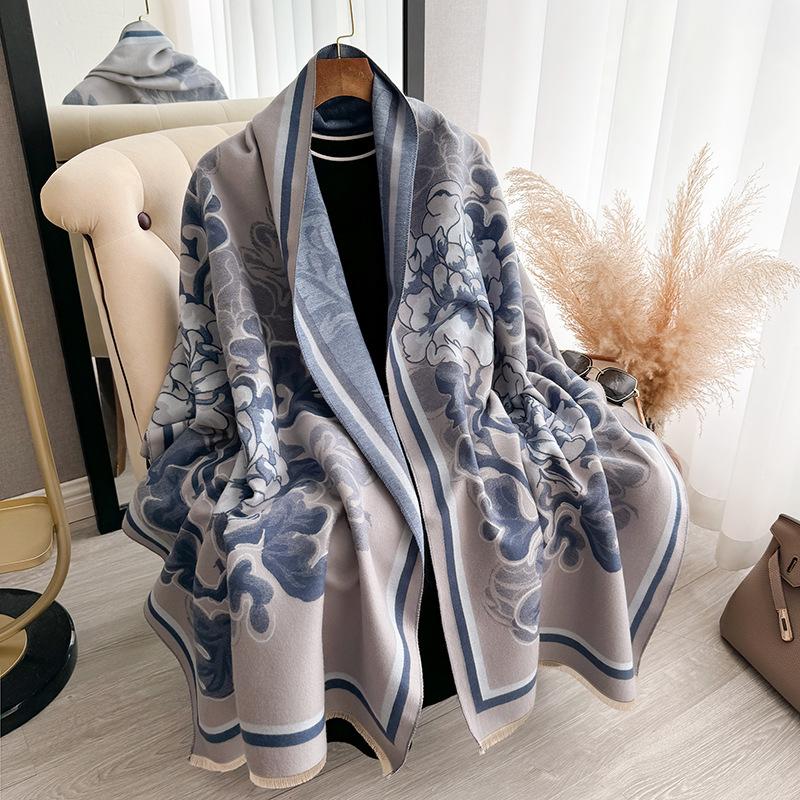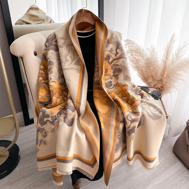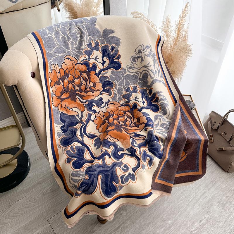 Модный принт Контрастные цвета Двусторонний Имитация кашемира Шарф Зимняя Высококачественная Теплая Шаль Женская