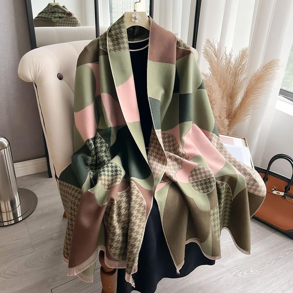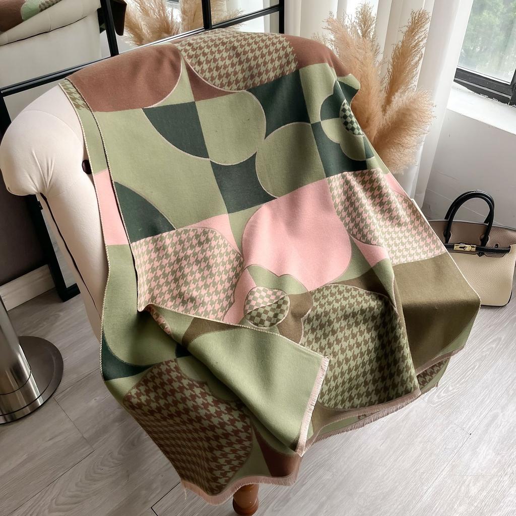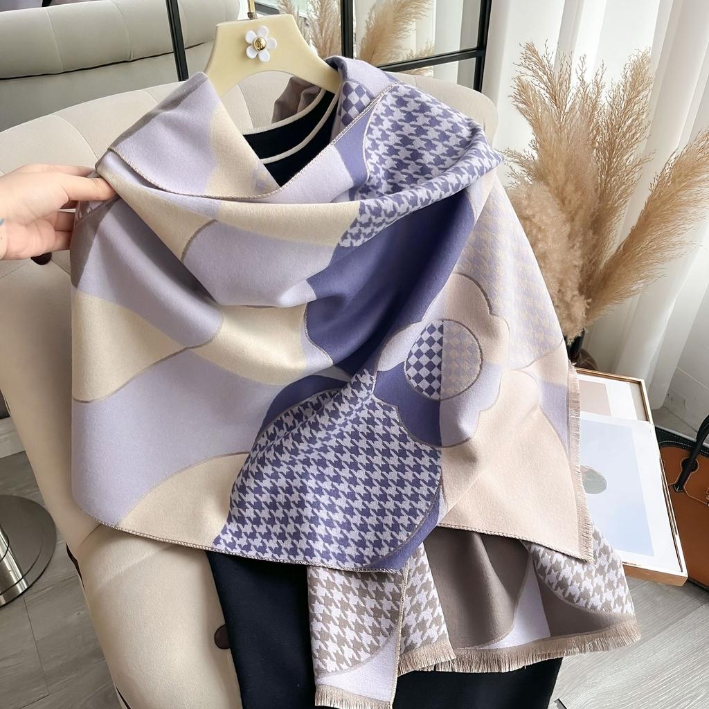 Корейская версия Птичья клетка Геометрическая форма Сращивание Цветочный Модный Универсальный Повседневный Имитация Кашемира Теплый Женский Шарф