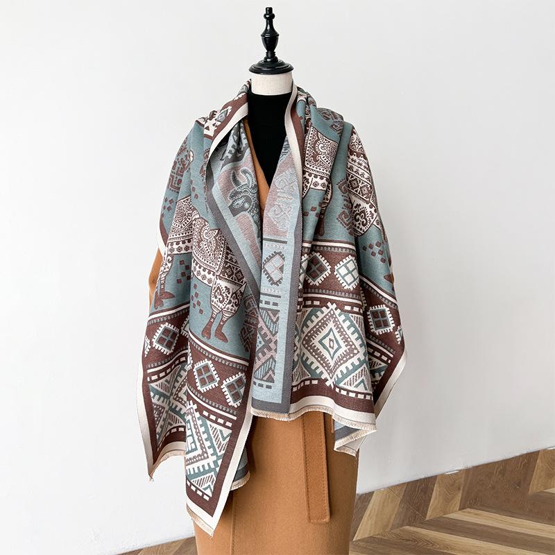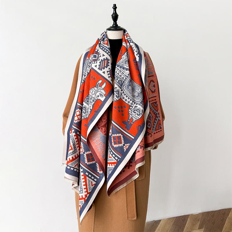 Дорожный Имитация Кашемира Этнический Стиль Женский Теплый Шарф Крутой Принт Альпаки Модная и Элегантная Шаль
