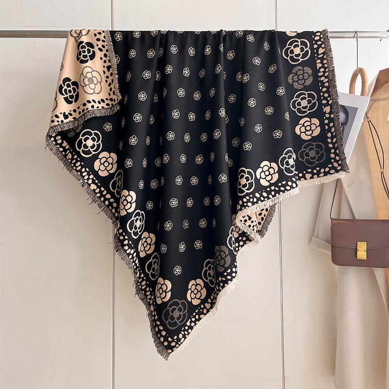 Темпераментная камелия Высококлассный большой квадратный шарф Двусторонний имитация кашемира Утолщенный шарф с декоративной шалью