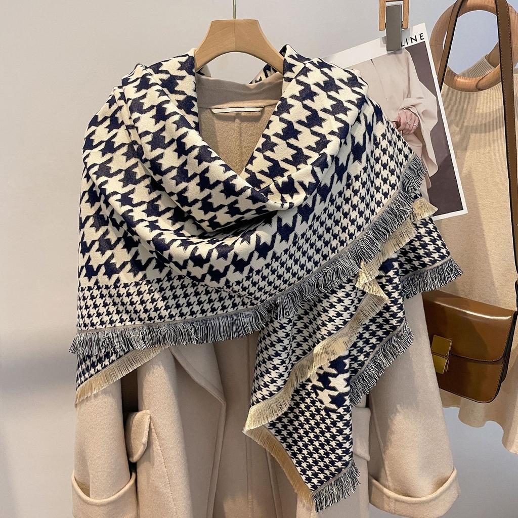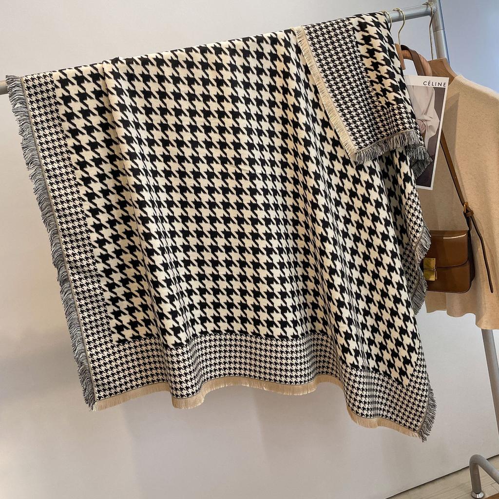 Качели И Зимняя Птица Клетчатый Шарф Женский Стиль Имитация Кашемира Шарф Утолщенная Теплая Шаль-Накидка для Кондиционированного Помещения