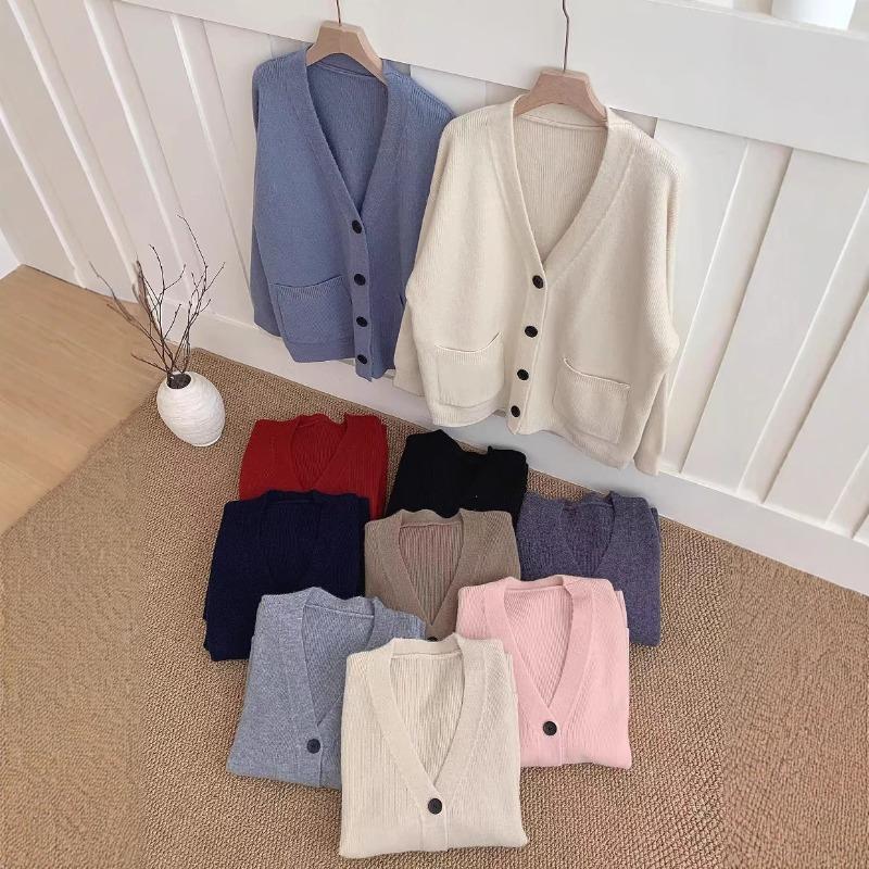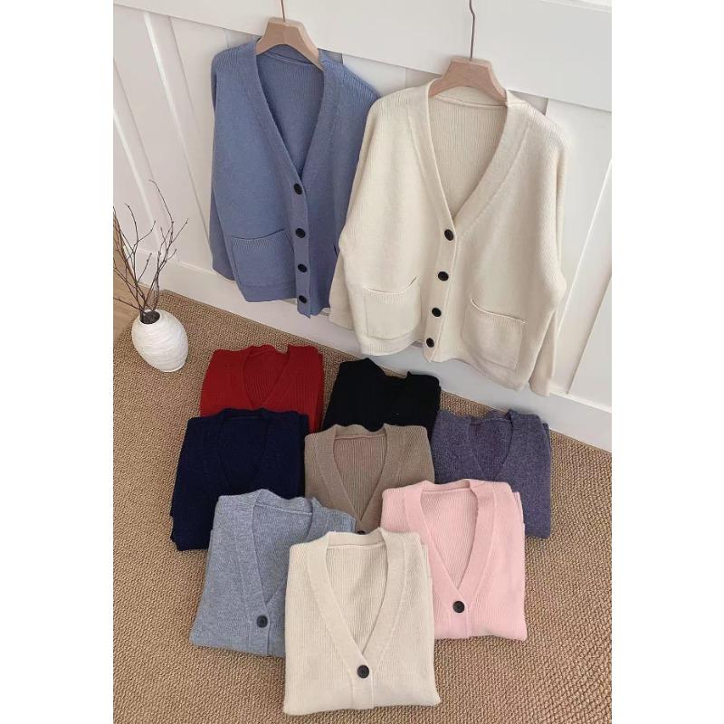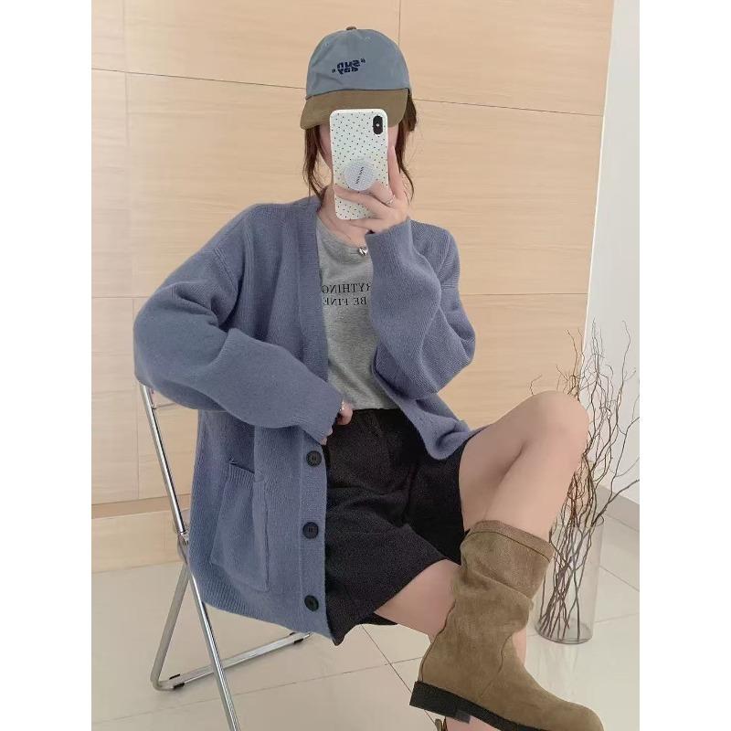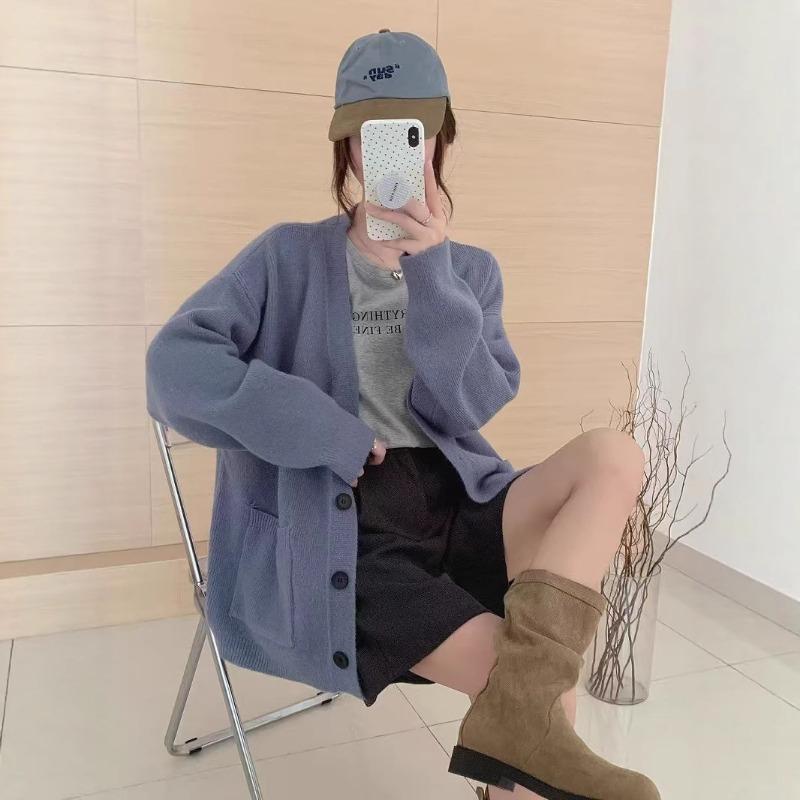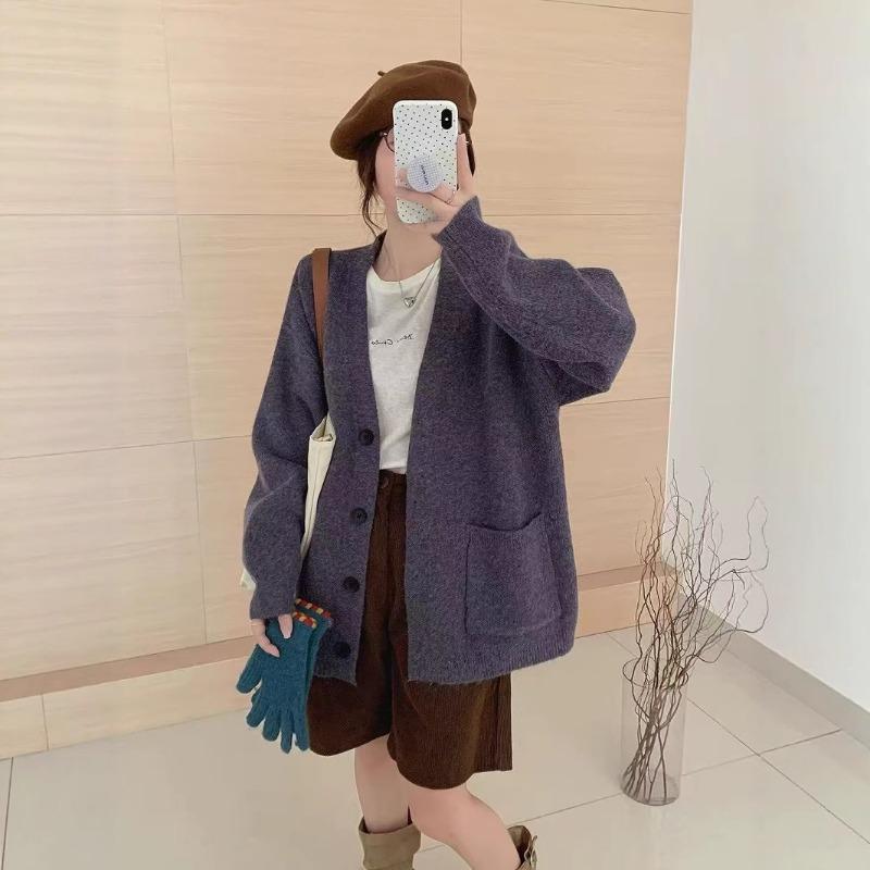 Простой стиль универсальная куртка-свитер женская осень и зима новая свободная ленивая однобортная вязаная большая кардиган женский