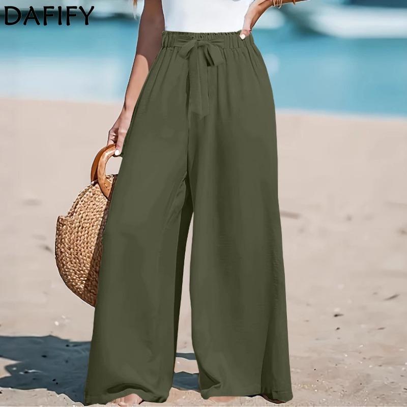 DAFIFY Женские Модные Повседневные Однотонные Брюки с Принтом и Высокой Посадкой