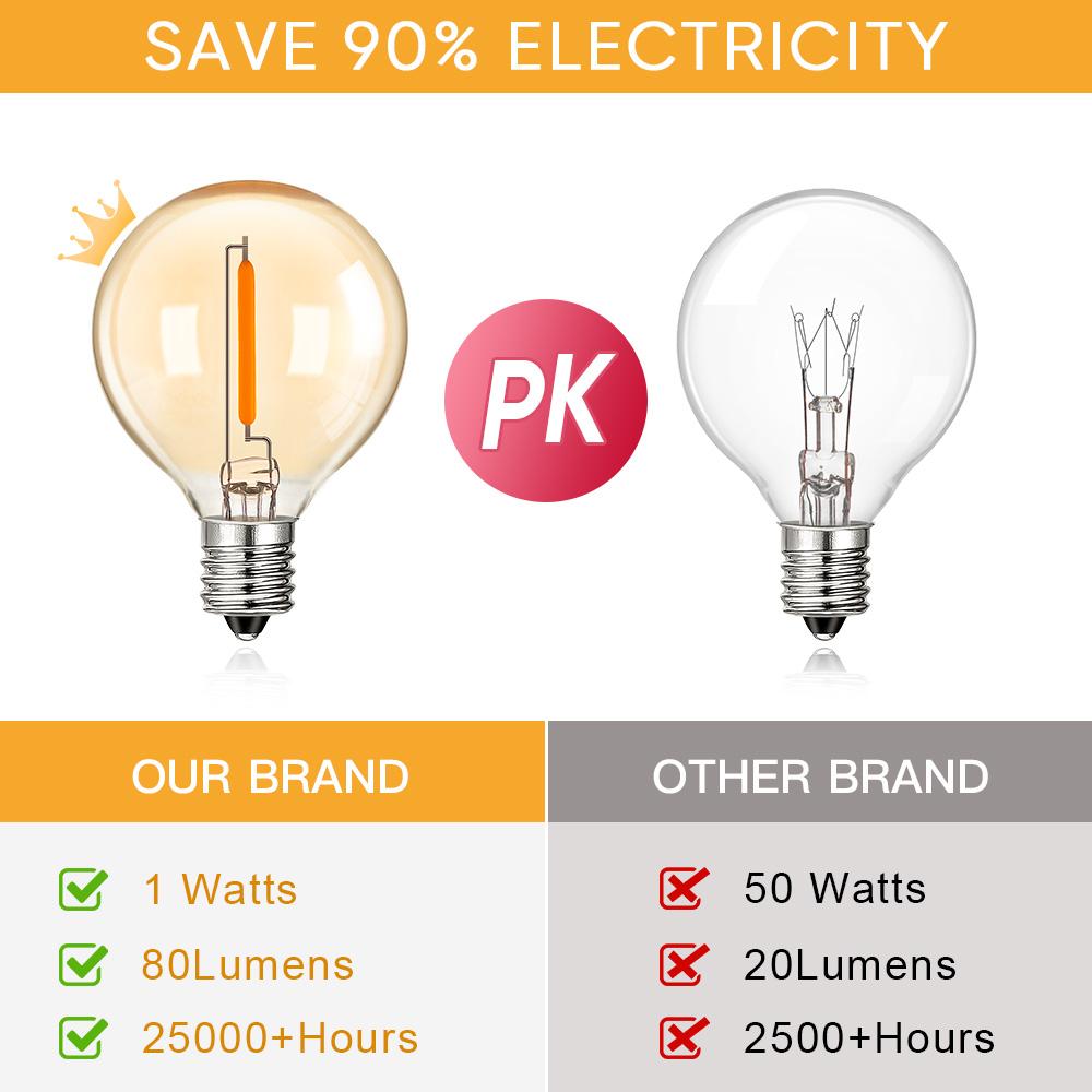 G50 Уличная гирлянда Диммируемая Винтажная Янтарная Стеклянная Светодиодная Лампа Сад Фея Патио Свадьба Рамадан Вечеринка Светодиодные Огни Украшение