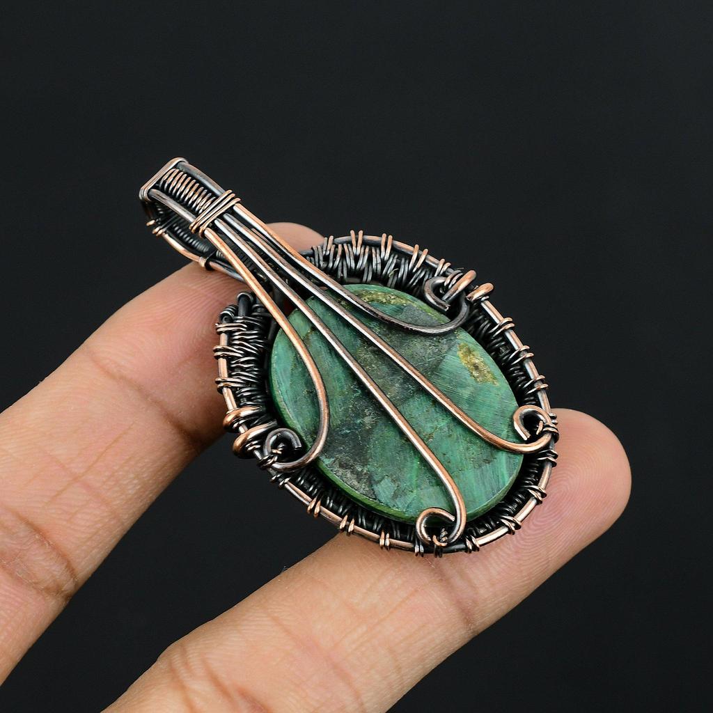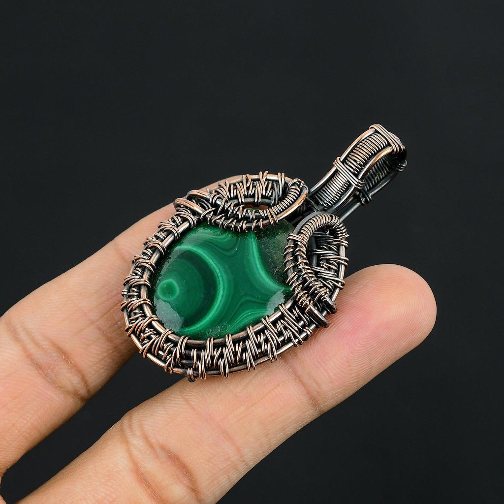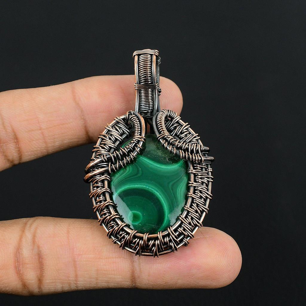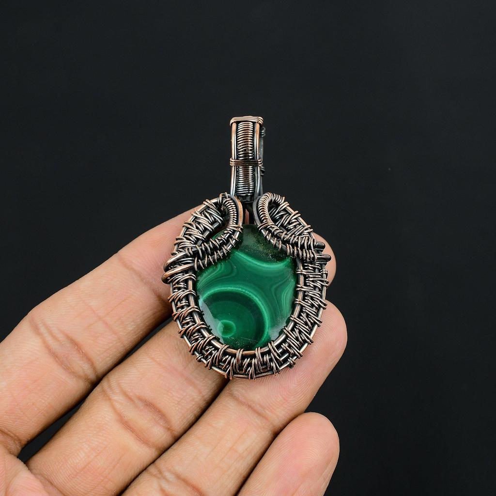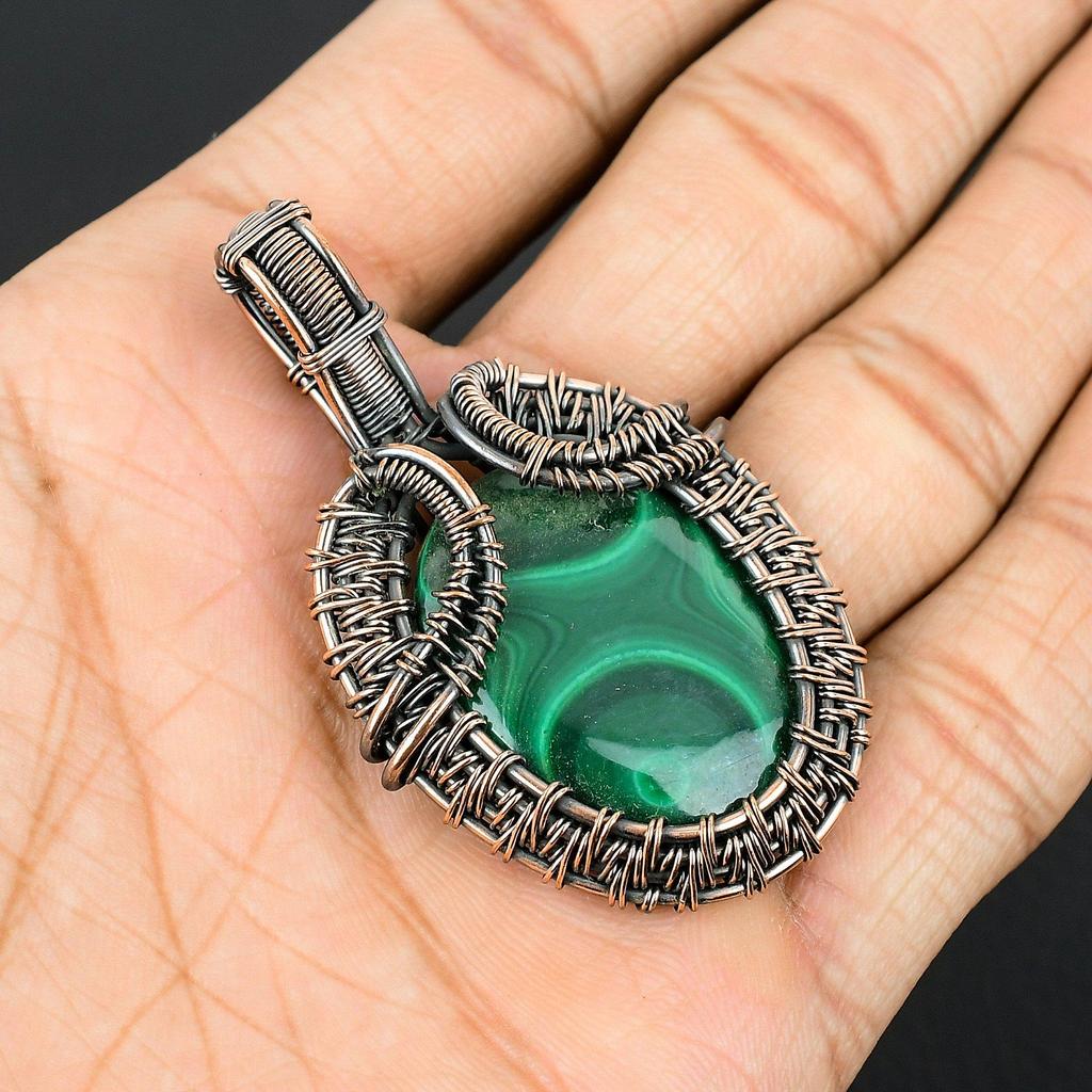 Подвеска из малахита, подвеска из меди 999 пробы, обернутая проволокой. Подарок для женщин, подвеска ручной работы, ювелирные изделия из драгоценных камней