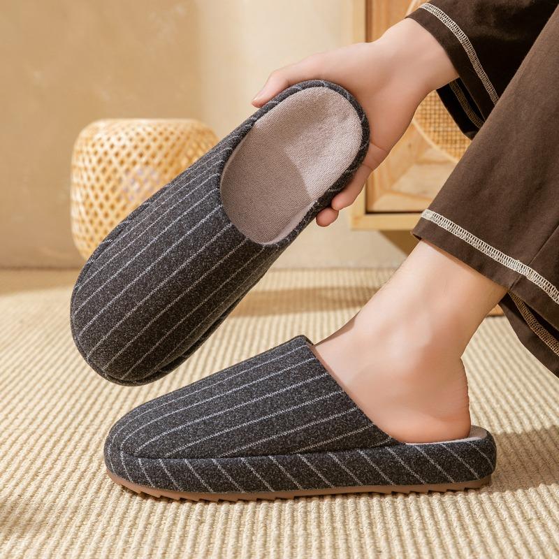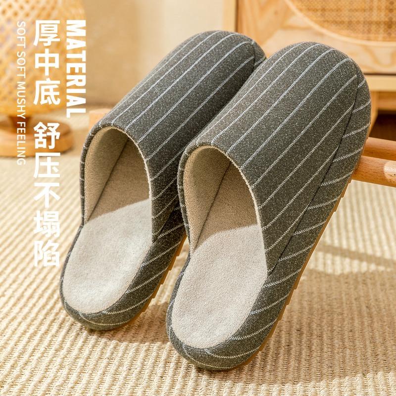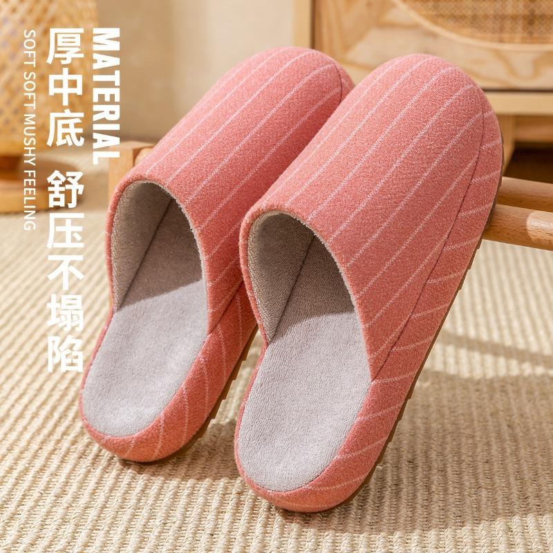 Японские полосатые хлопковые тапочки домашние осенне-зимние парные комнатные теплые толстоподошвенные зимние тапочки женские домашние