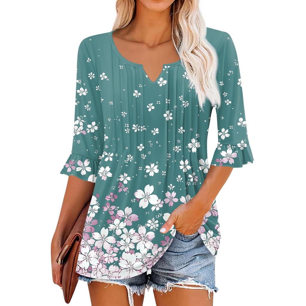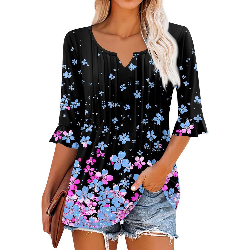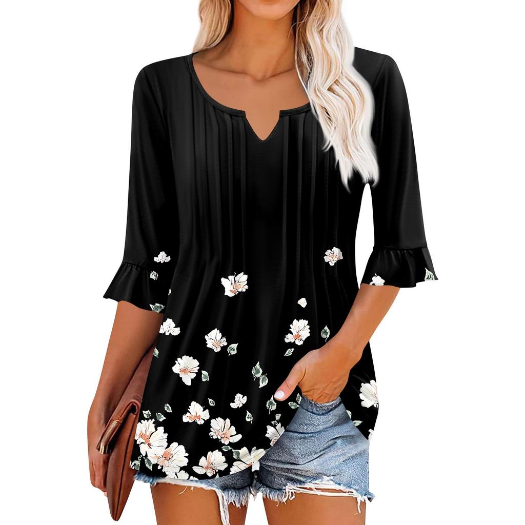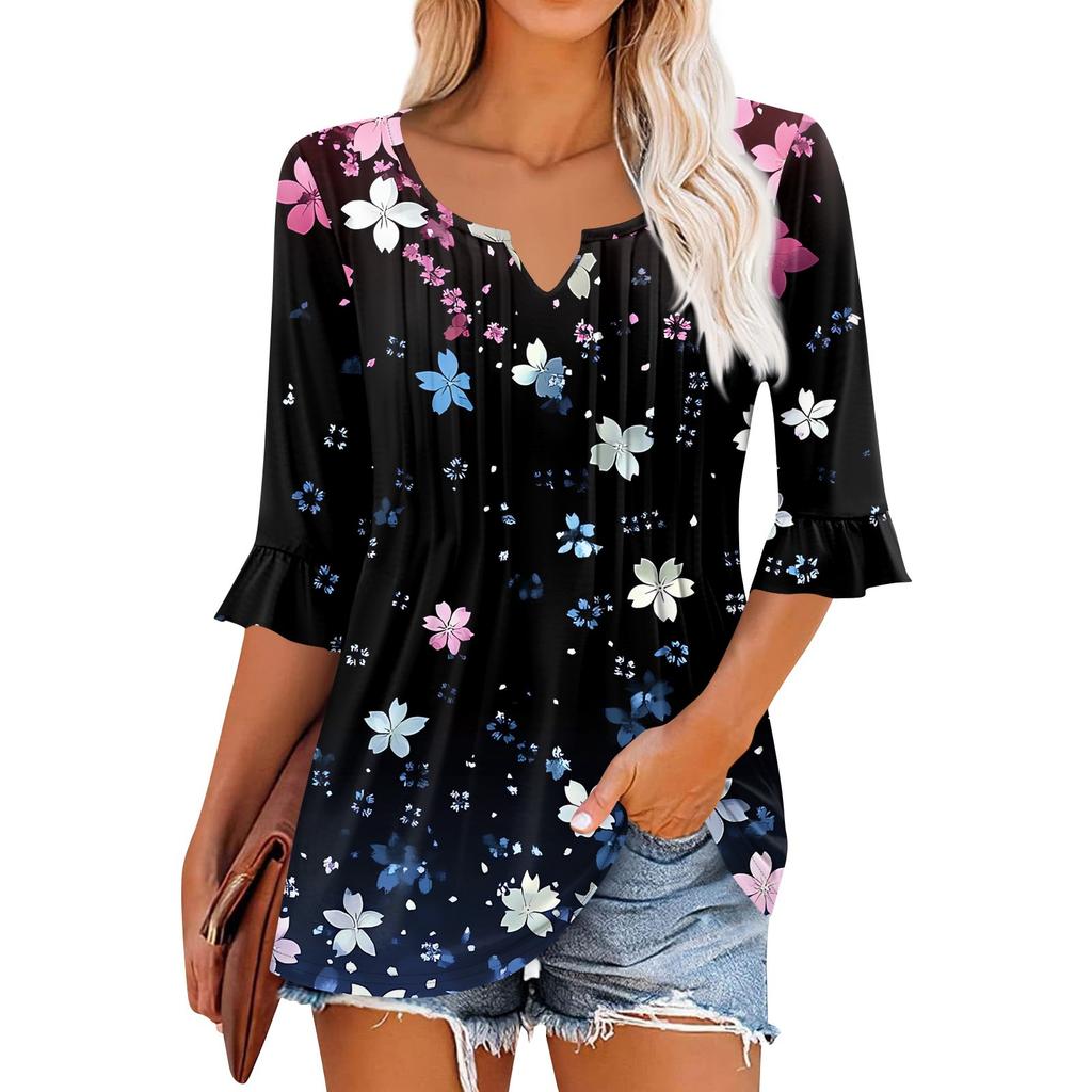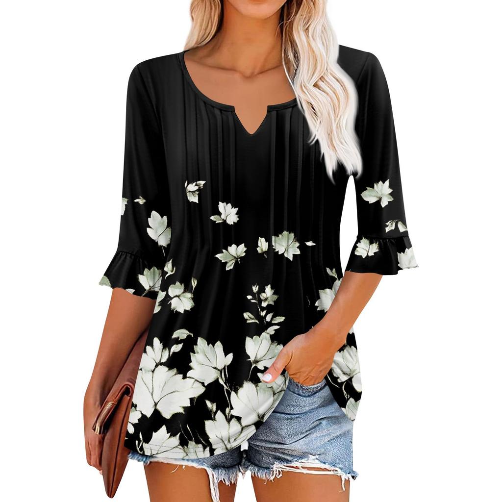 3/4 рукава топы для женщин повседневные оборки V-образный вырез футболки рабочие блузки нарядные туники топы