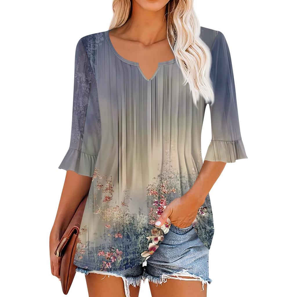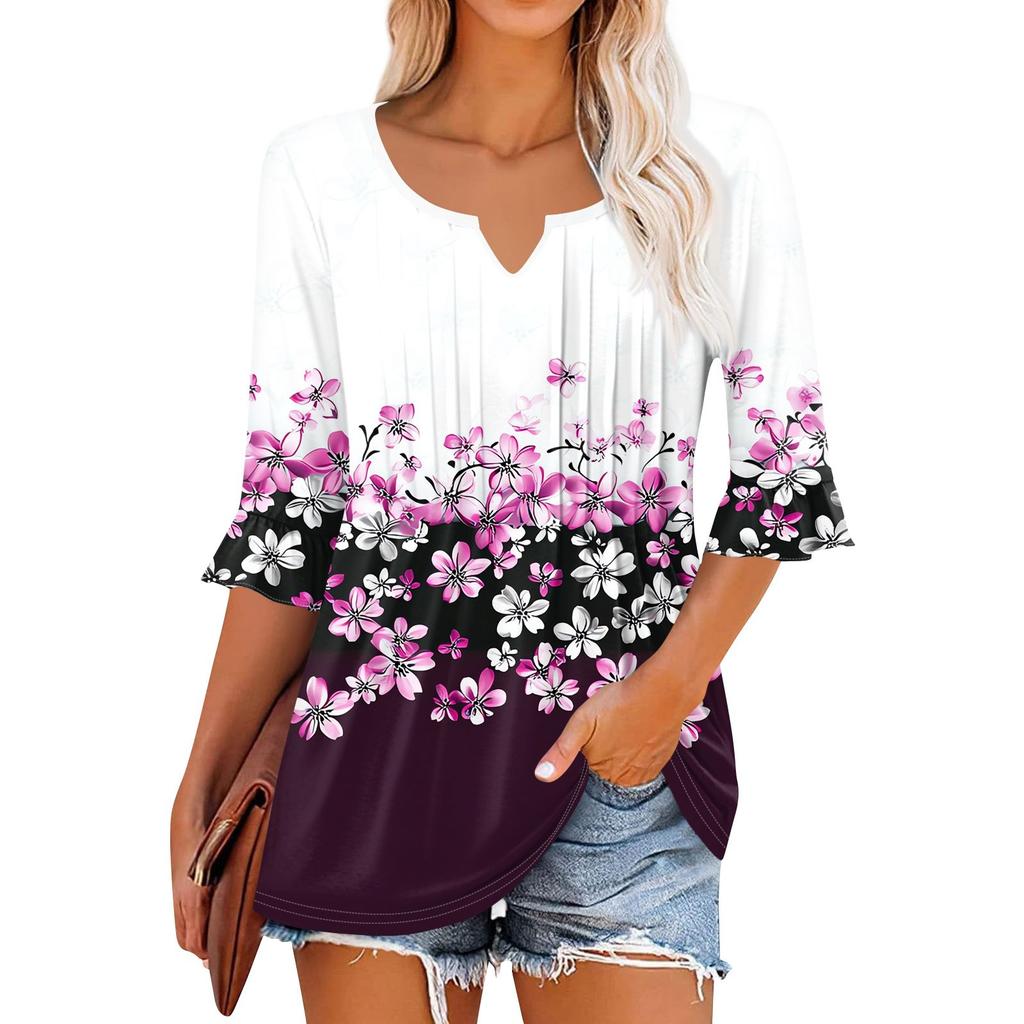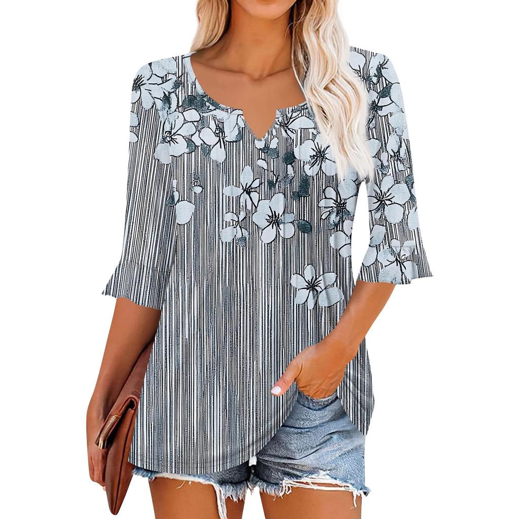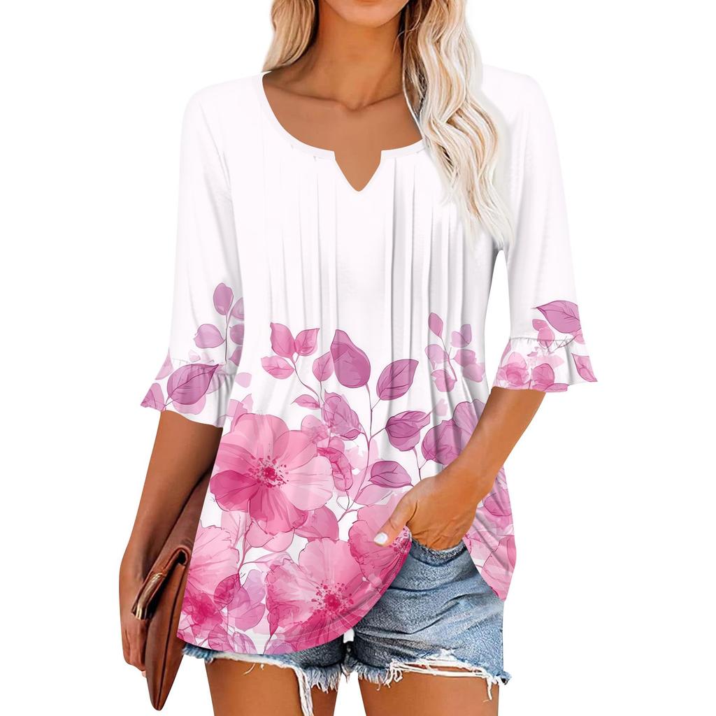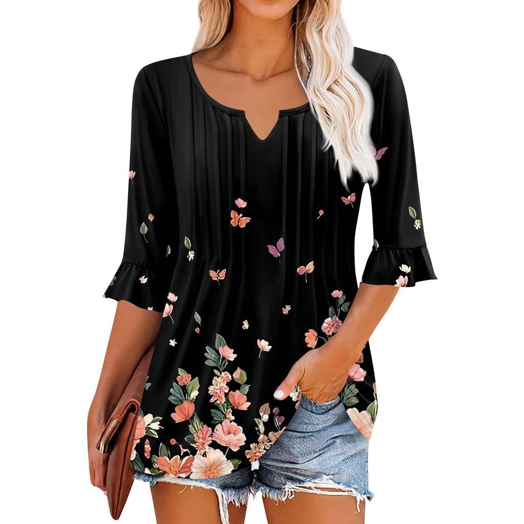 3/4 рукава топы для женщин повседневные оборки V-образный вырез футболки рабочие блузки нарядные туники топы