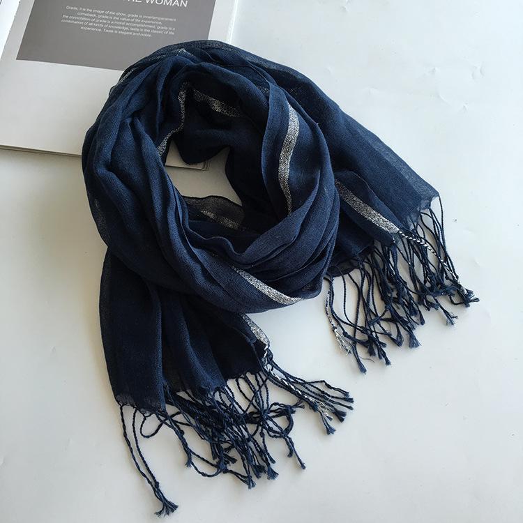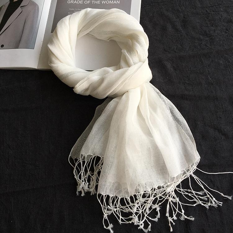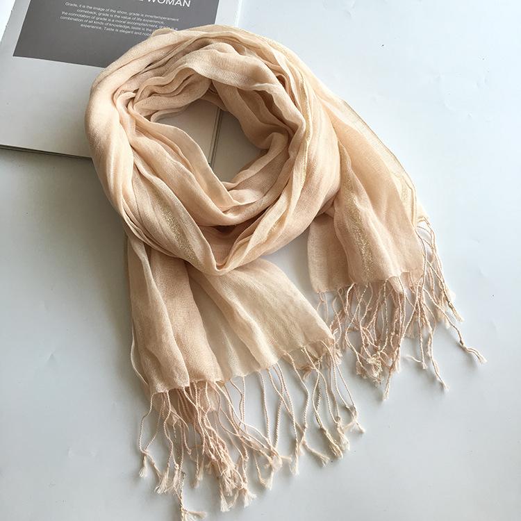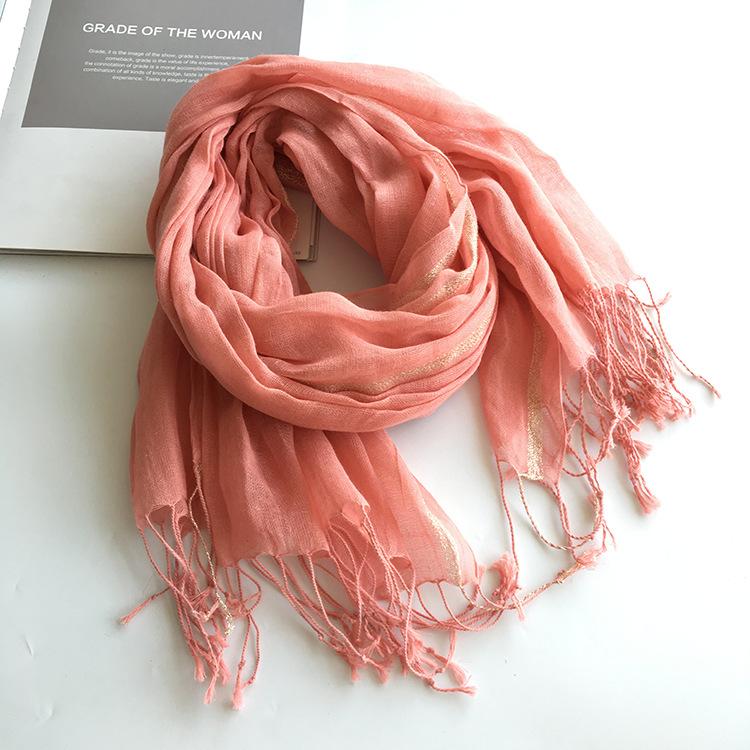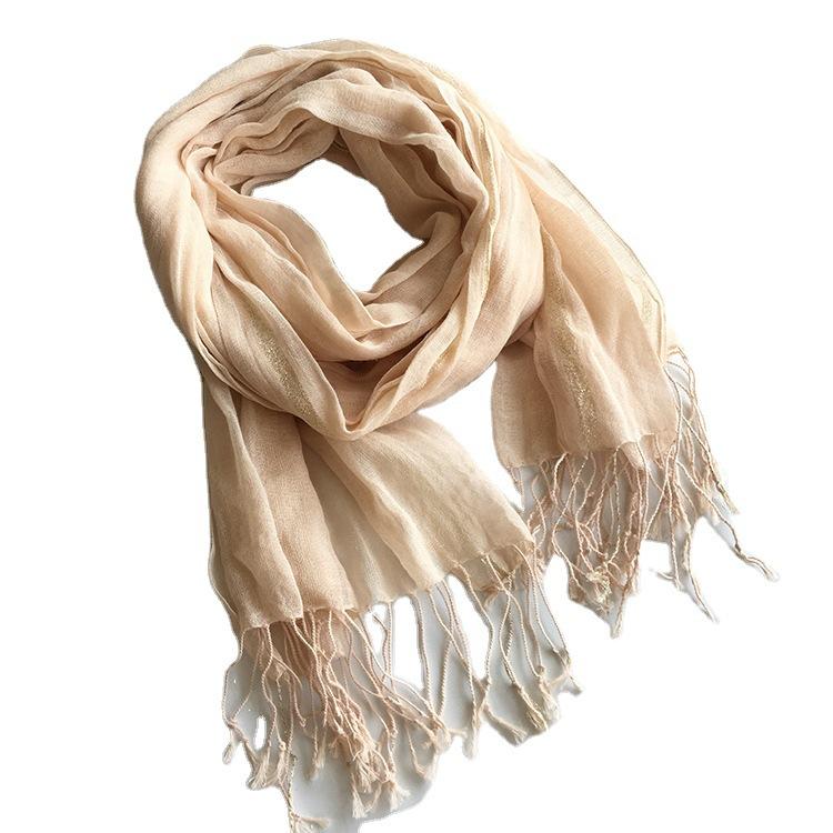 Прямая поставка однотонных хлопково-льняных шарфов, легких и дышащих солнцезащитных шарфов для весны и лета, модных шелковых шарфов с бахромой