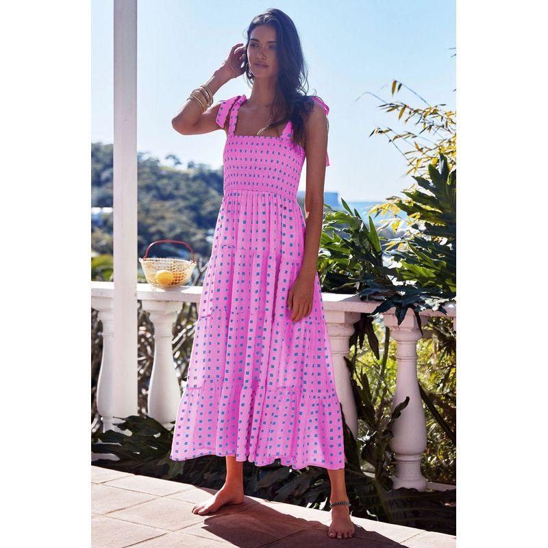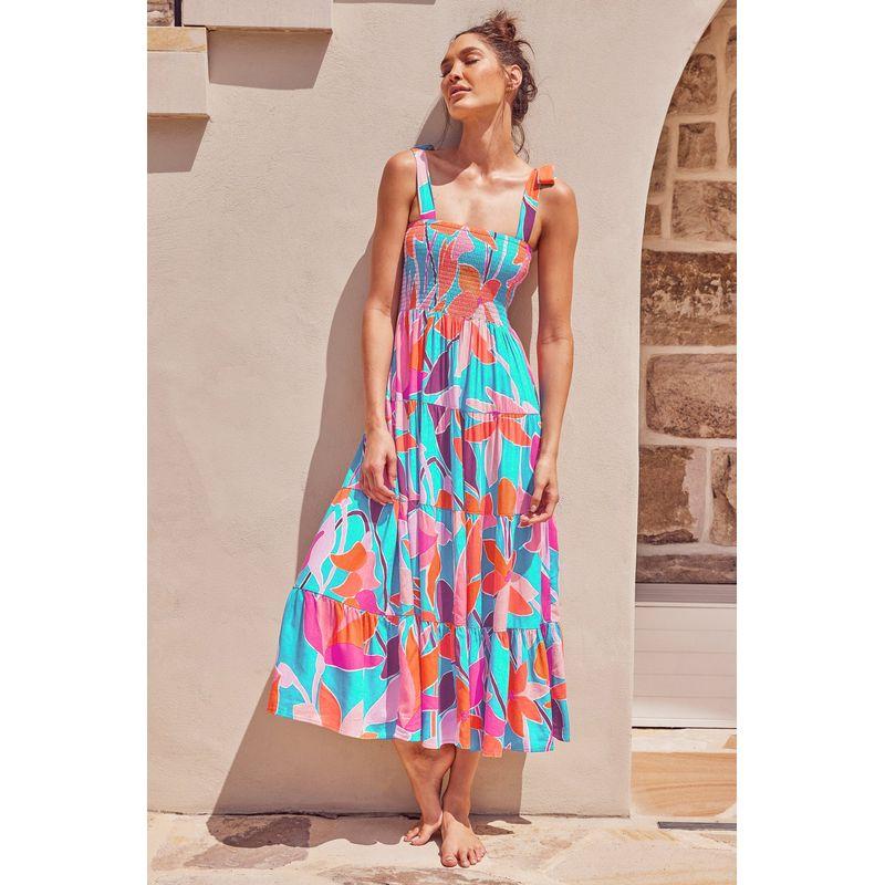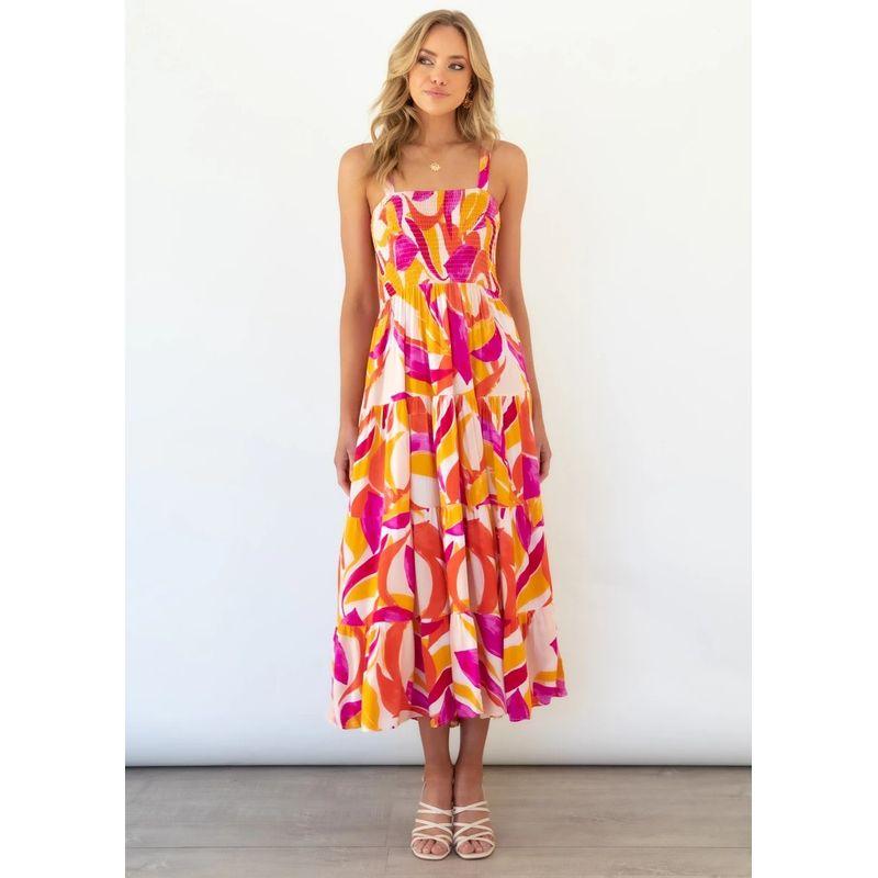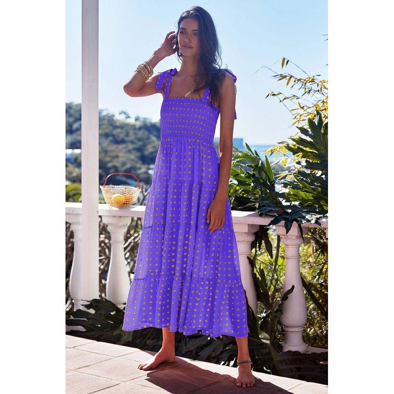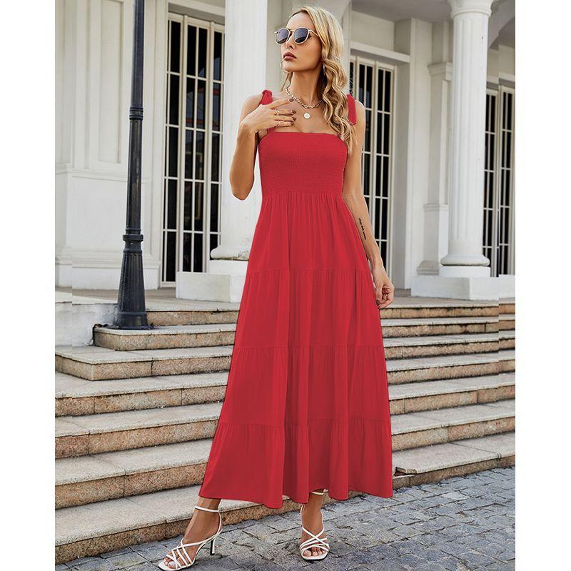 Длинное платье-комбинация2025 Европейское и американское лето Женское Новое Без рукавов С принтом Длинное платье на бретелях