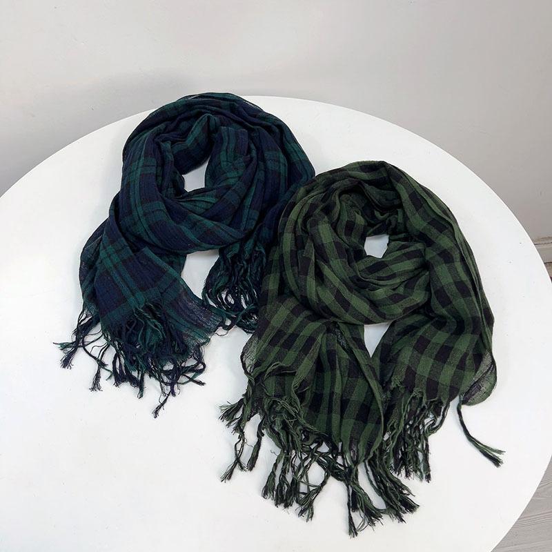 Тонкий клетчатый шарф из хлопка и льна, литературный и универсальный, мягкая защита шеи, шелковый шарф, женская дорожная шаль, теплый для осени и зимы — купить товар онлайн с бесплатной доставкой по всему миру!