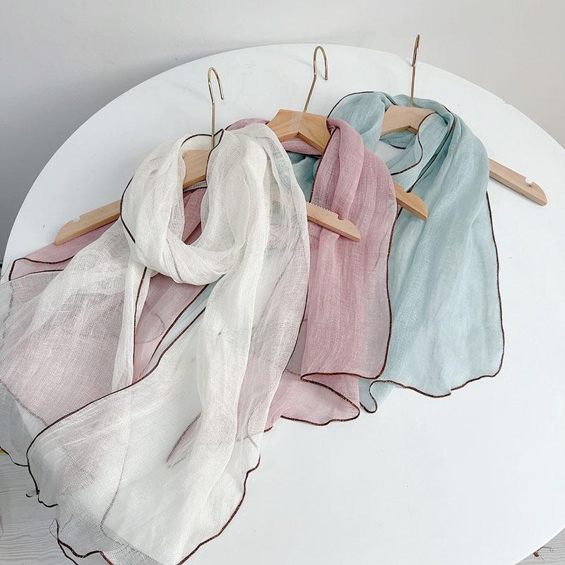 Тонкий однотонный удлиненный шарф-ромб, японский литературный солнцезащитный шелковый шарф, нерегулярная льняная шейная шаль для женщин