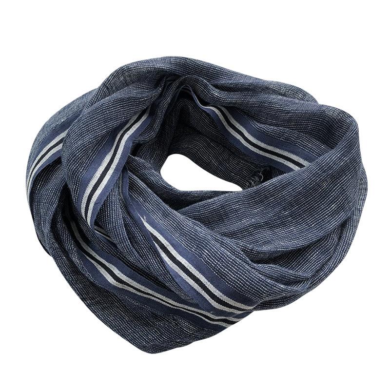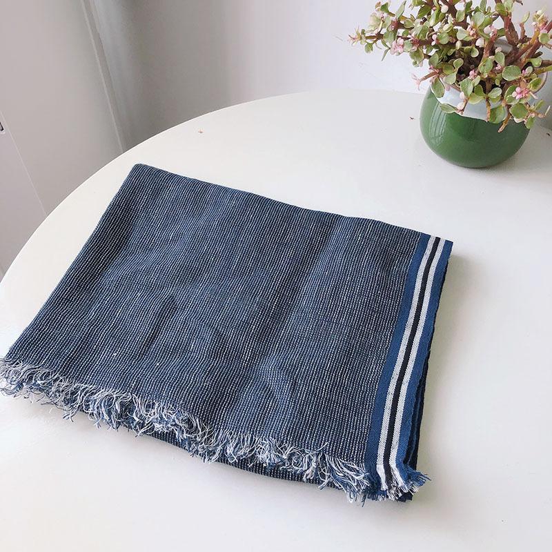 Мужской льняной шарф однотонный с полосой по краю универсальный дышащий платок повседневный с необработанным краем японский шелковый шарф мужской
