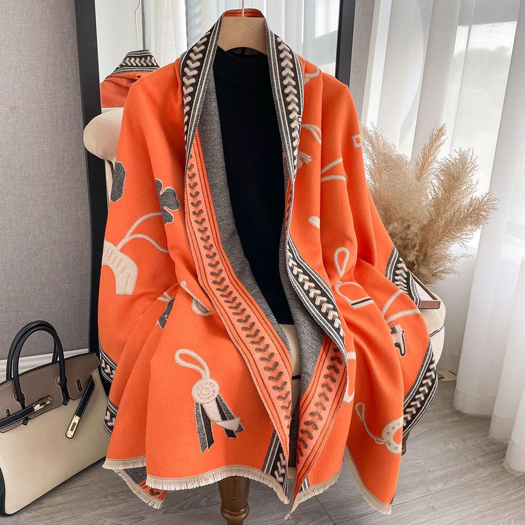 Зарубежный Модный Цвет Тканый Узор Хаки Имитация Кашемира Шарф Женский Осенний Универсальный Длинный Осенний Верхний Шаль Шарф