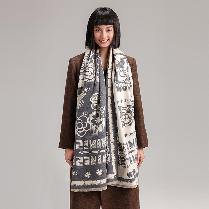 Шарф из имитации кашемира, универсальный, с камелией, четырехлистным клевером, тепловой, для кондиционера, шаль с модным шарфом