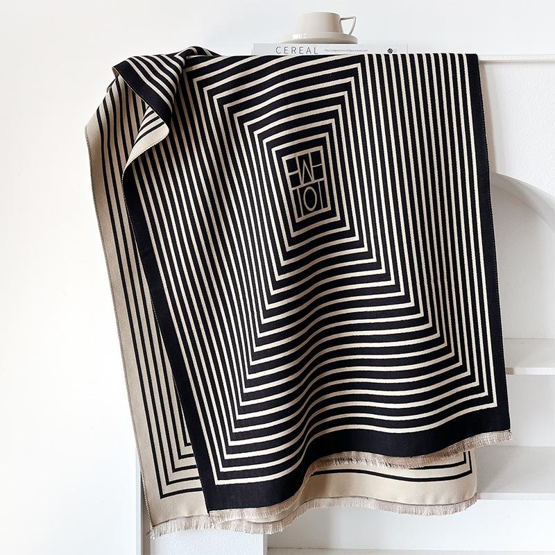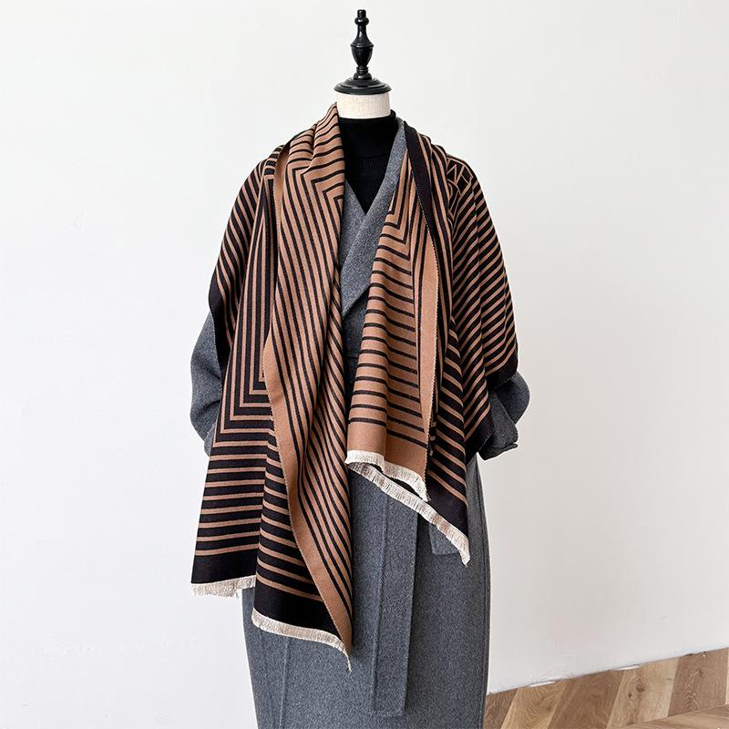 Геометрические полосы контрастных цветов, двусторонний шарф из имитации кашемира, зимняя высококачественная теплая шаль
