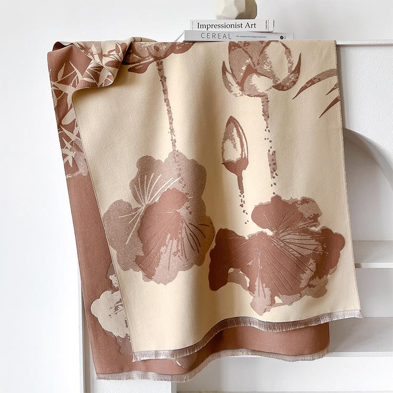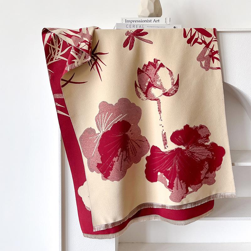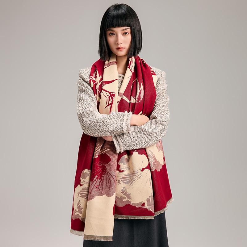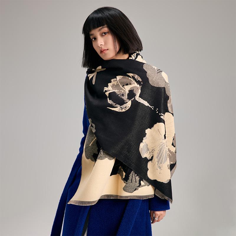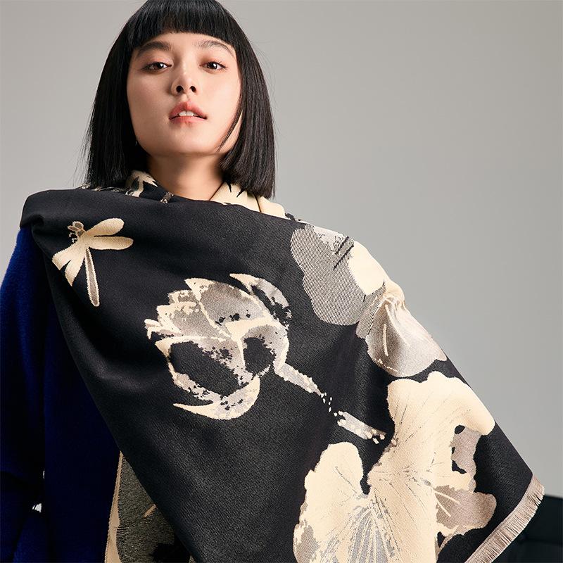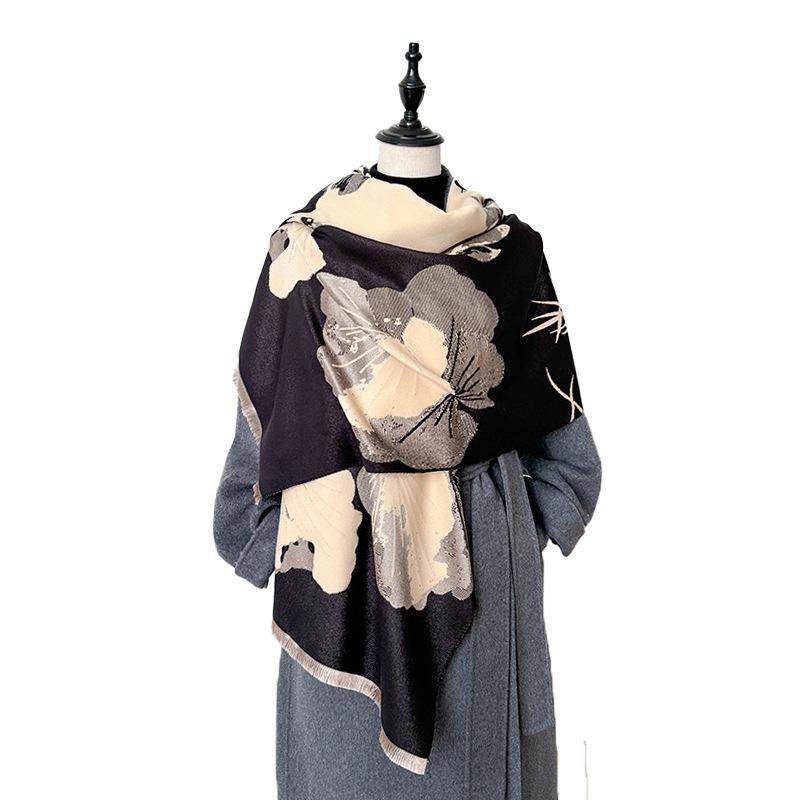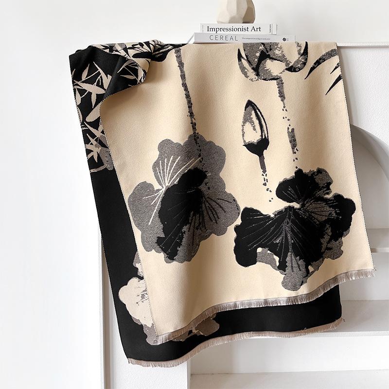 Guochao тушь и стиль стирка контрастные цвета двусторонний имитация кашемира шарф зимняя высококачественная теплая шаль