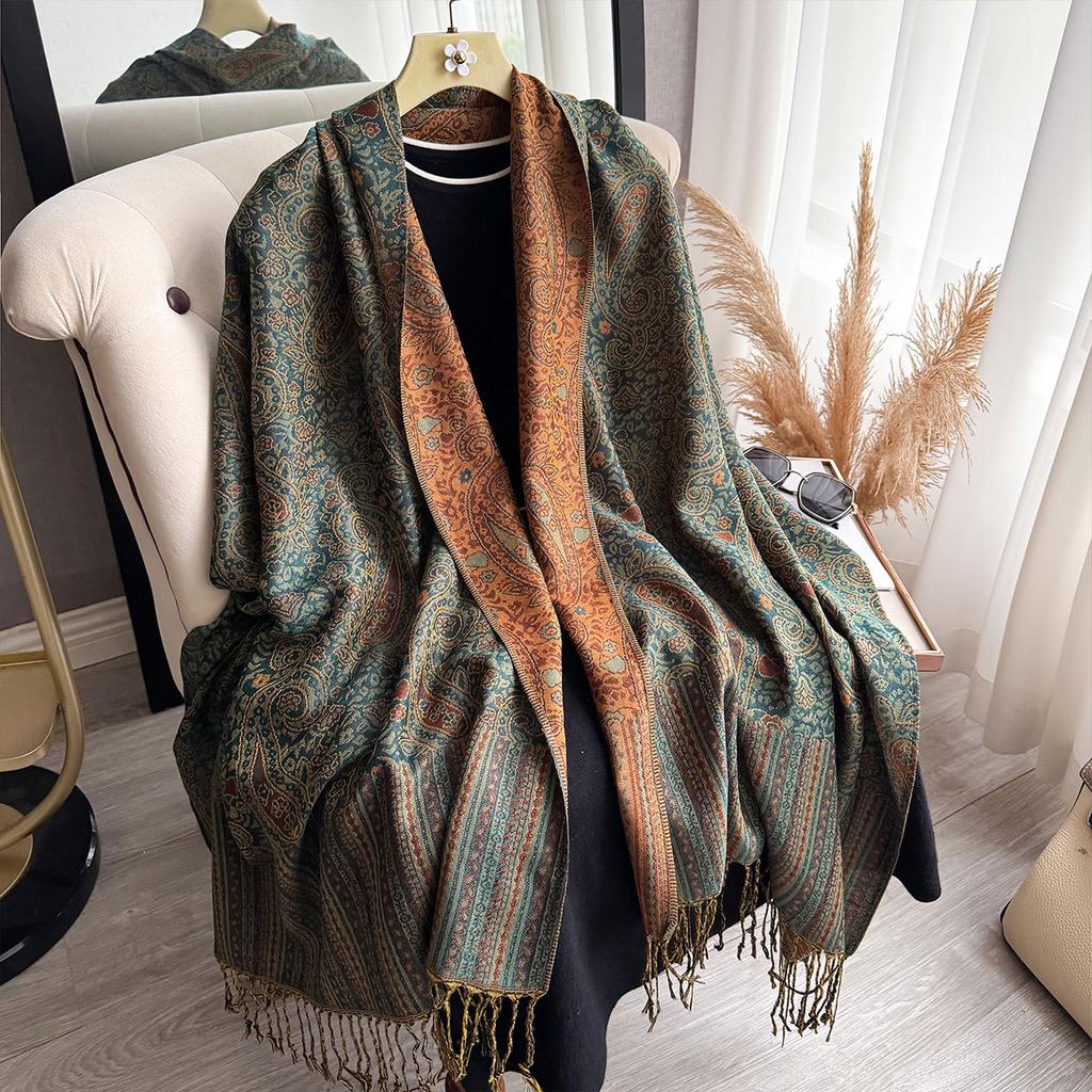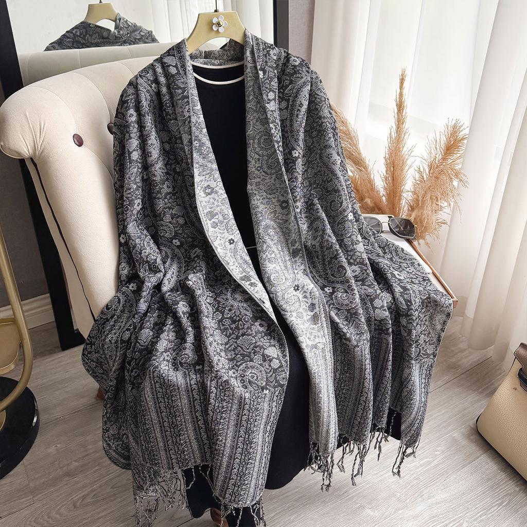 Классический имитация кашемира Модный универсальный жаккардовый шарф с бахромой из кашемира Длинный шарф Тонкий этнический стиль