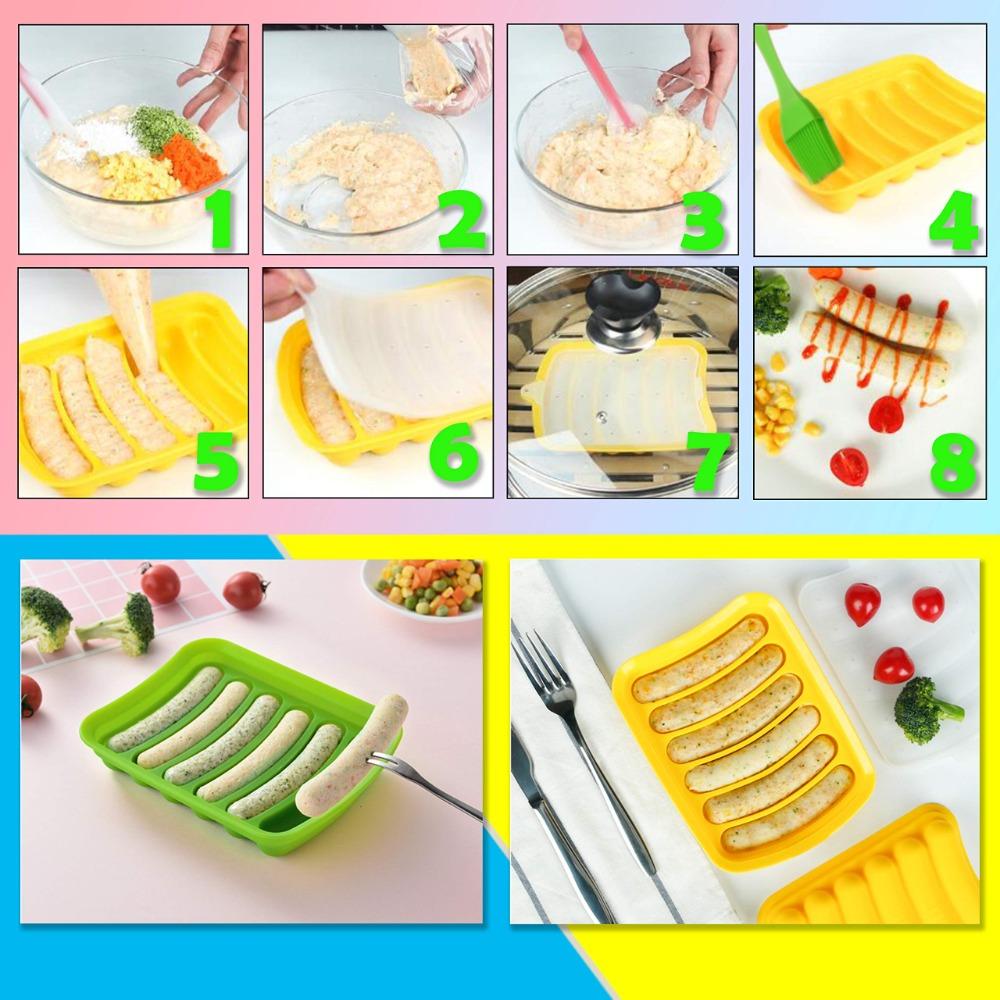 1 шт. Гибкая форма для хот-догов с антипригарным покрытием, 6 ячеек, для лотка для кубиков льда, хлеба, конфет, шоколада и торта, для приготовления домашних сосисок