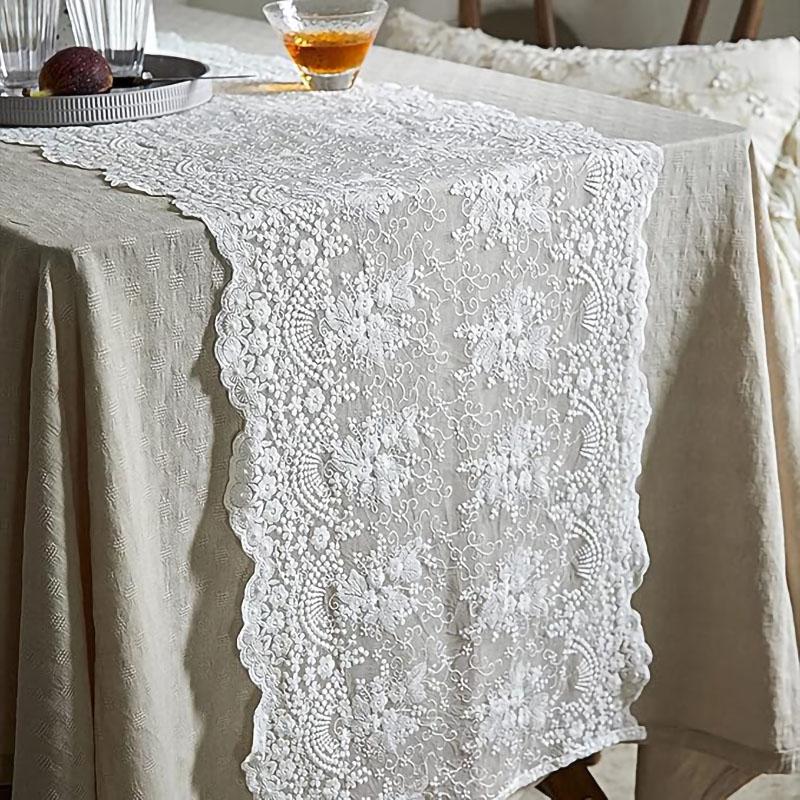 Винтажная кружевная скатерть Французский романтический белый столовый раннер Дом Ресторан Фестиваль Обеденный стол Свадебная вечеринка Украшение