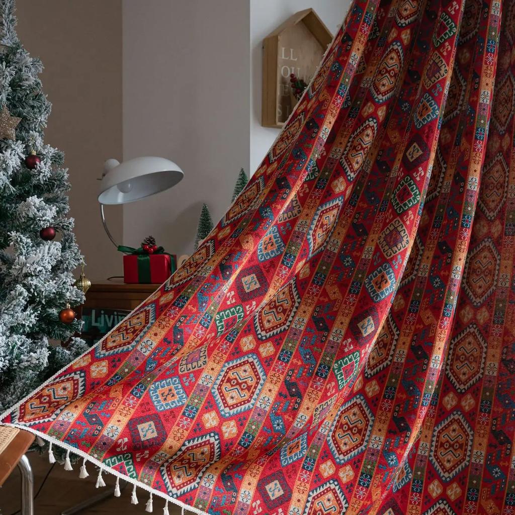 Шторы в богемном стиле жаккардовые геометрические с кисточками готовые кухонные ламбрекены спальня гостиная полузатемняющие драпировки