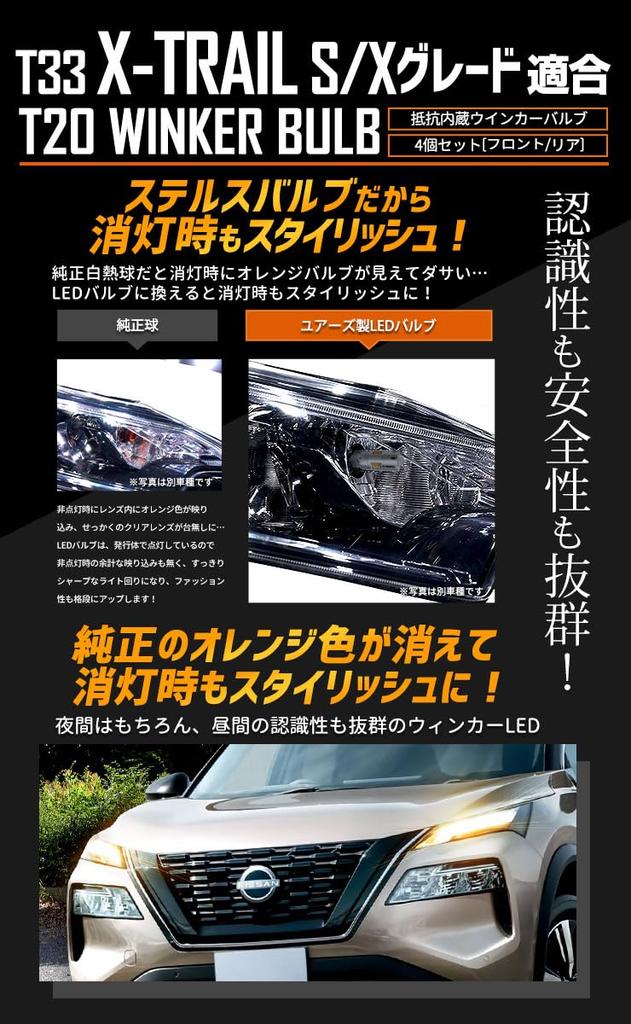 Yours Светодиодные лампы указателей поворота серии T33 с проектором и хромированным стелс-эффектом спереди и сзади T33 Stealth Custom Nissan M X-TRAIL S/X Встроенные