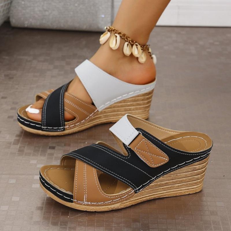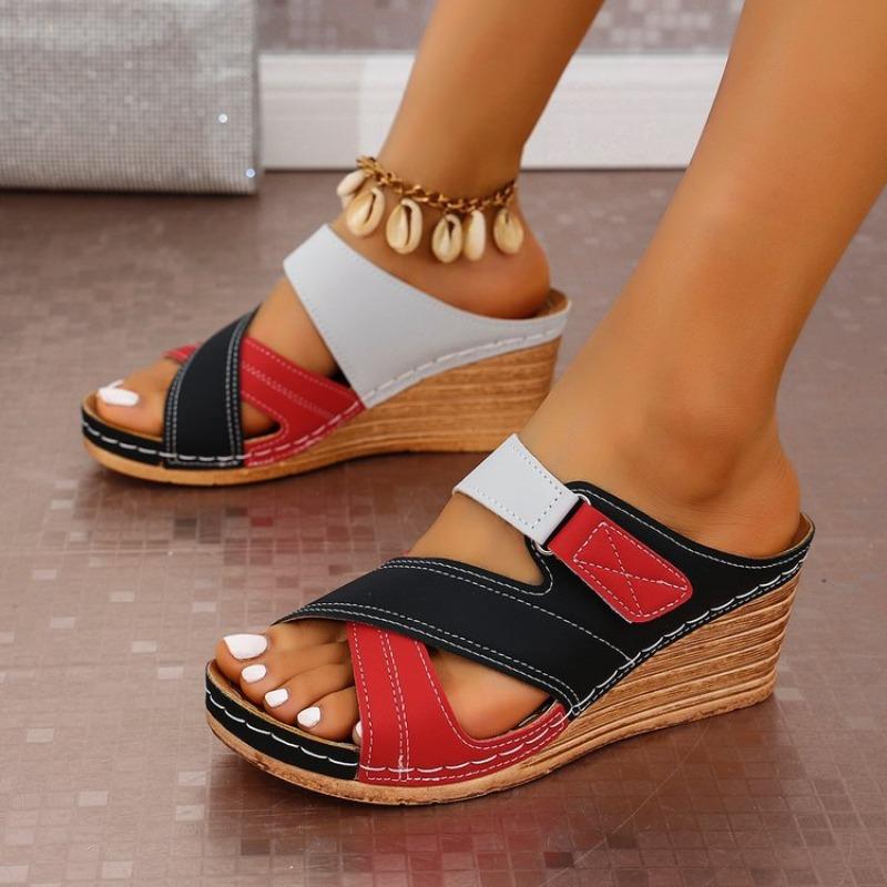 Женские летние шлепанцы на танкетке большого размера, новая модная модель, сандалии с перекрестными ремешками и цветной отделкой
