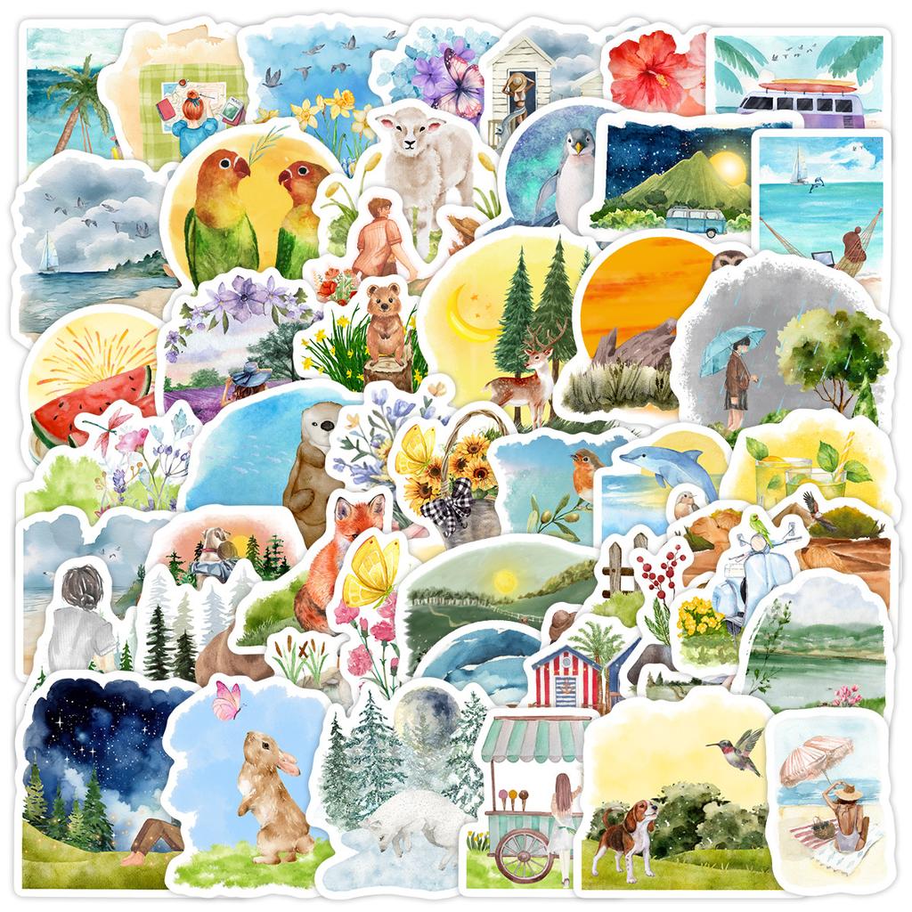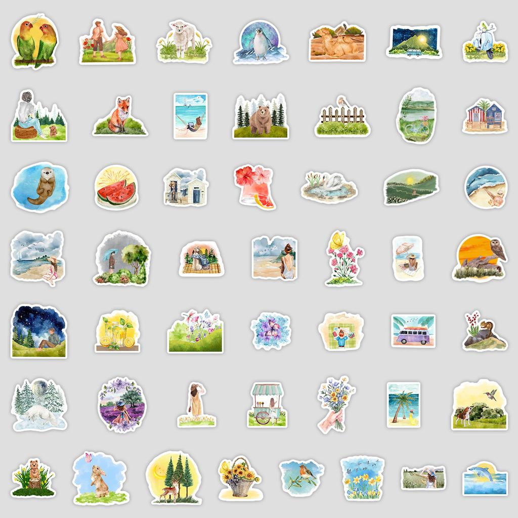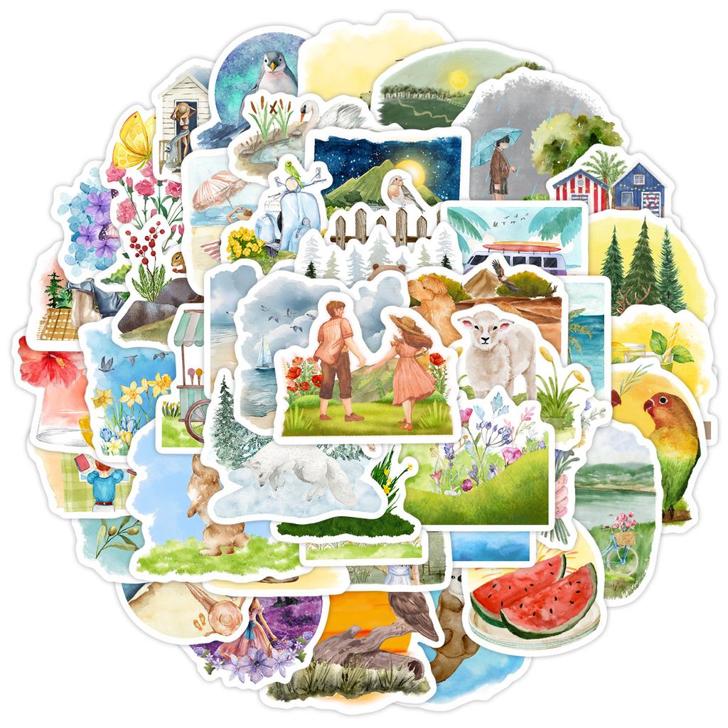 50 Акварельных Весенних Граффити Наклеек Чашка для воды Компьютер Чемодан Скейтборд Водонепроницаемые Декоративные Наклейки для DIY