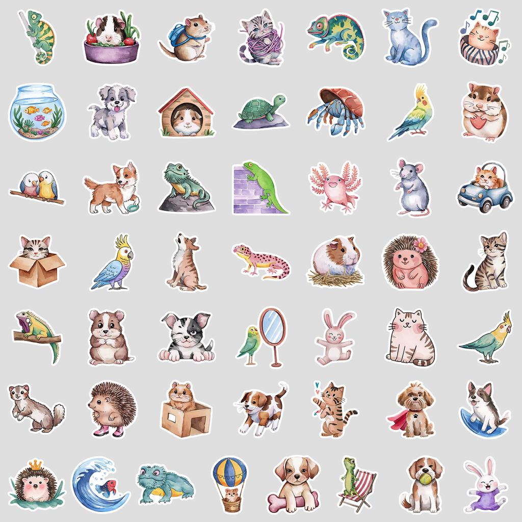 50 Милых Акварельных Наклеек Граффити Животных Наклейки Материал для Ручного Учета Канцелярский Набор Наклейки для Чемодана Заметок Водонепроницаемые Наклейки