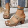 Женские шлепанцы на высоком каблуке большого размера, толстый каблук, круглый носок, уличные шлепанцы