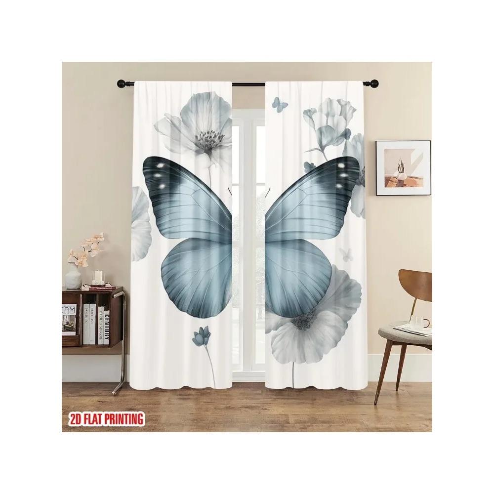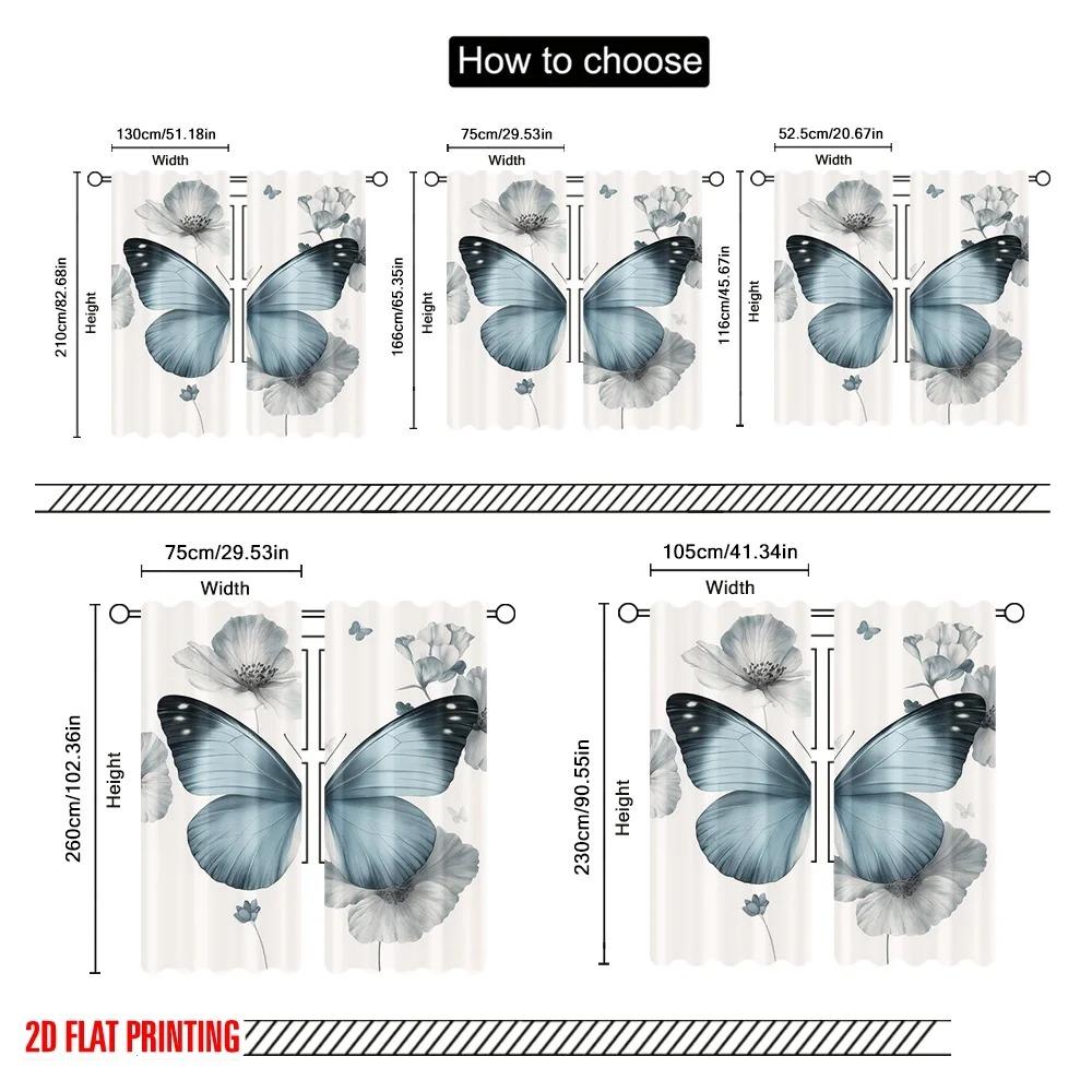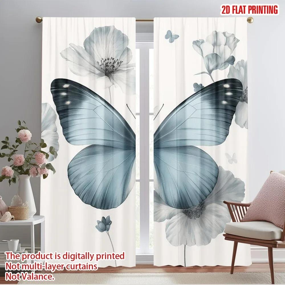 2pc,2D plane printing Light Filtering Curtains Blue Butterfly Bliss Durable Polyester (without rod) Holiday for Bedroom Office