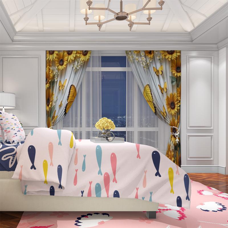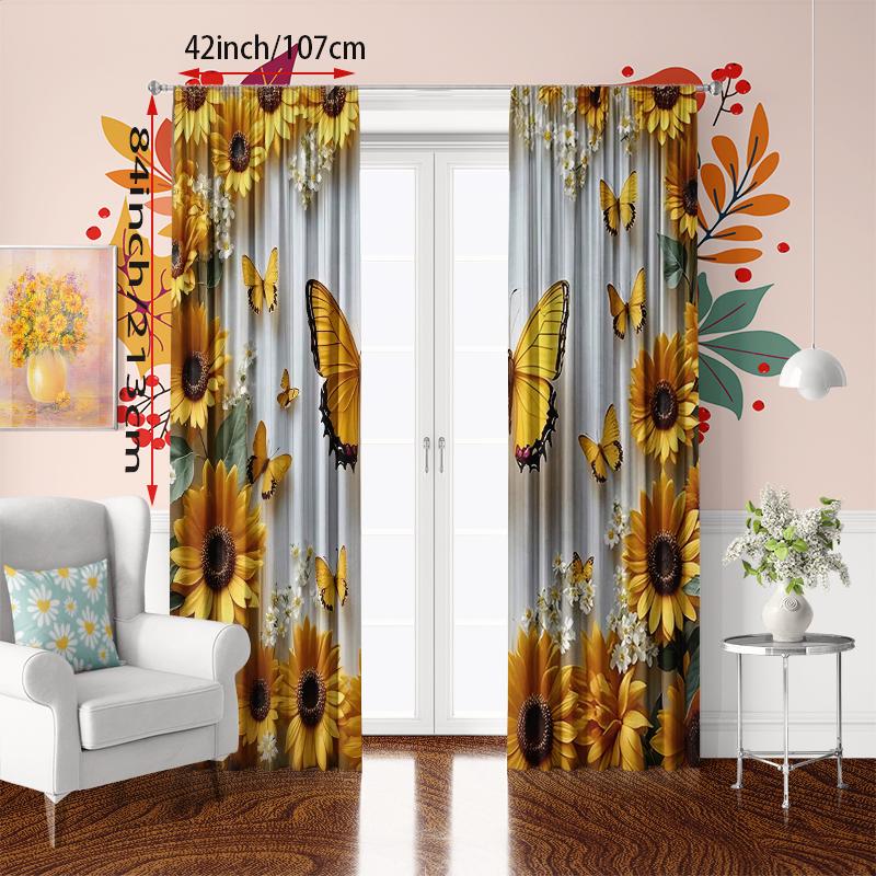 2 шт. - Полиэстеровые шторы с подсолнухами и бабочками, шторы с кулиской 42*84, для спальни, гостиной, домашней комнаты